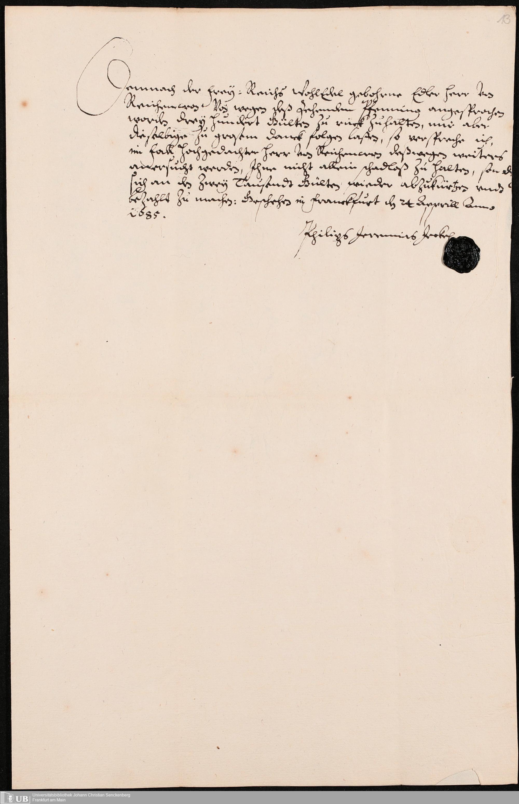 Na 31 Nachlass Johann Christian Senckenberg, 341 - Kaufurkunde über das De-Werdersche Haus
