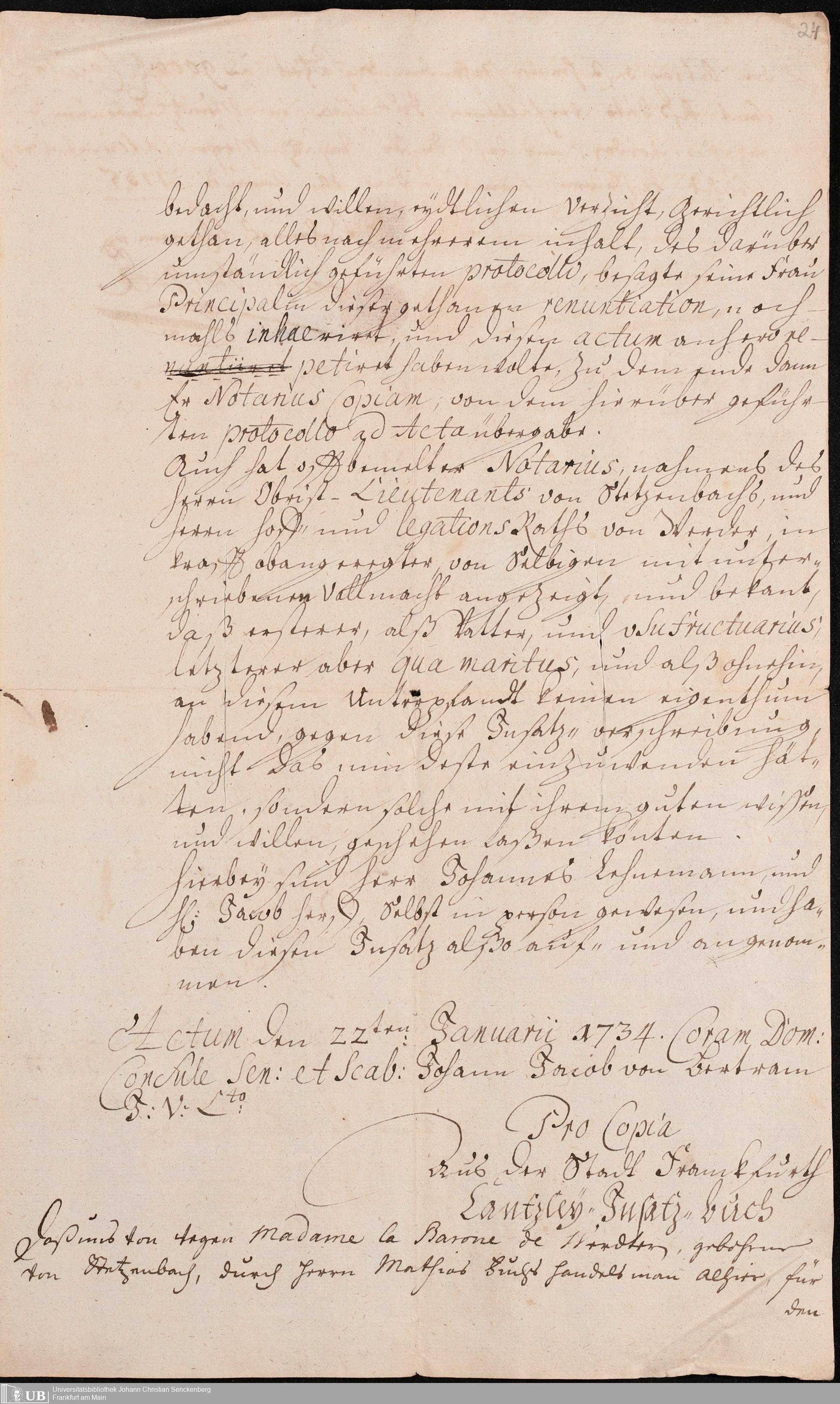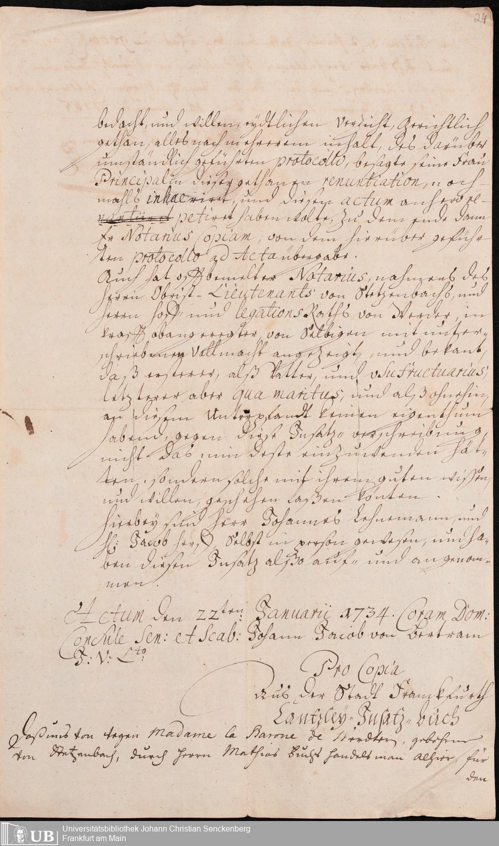 Na 31 Nachlass Johann Christian Senckenberg, 341 - Kaufurkunde über das De-Werdersche Haus
