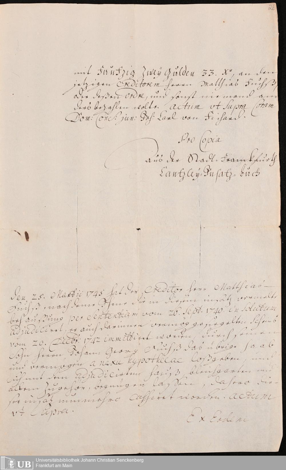 Na 31 Nachlass Johann Christian Senckenberg, 341 - Kaufurkunde über das De-Werdersche Haus