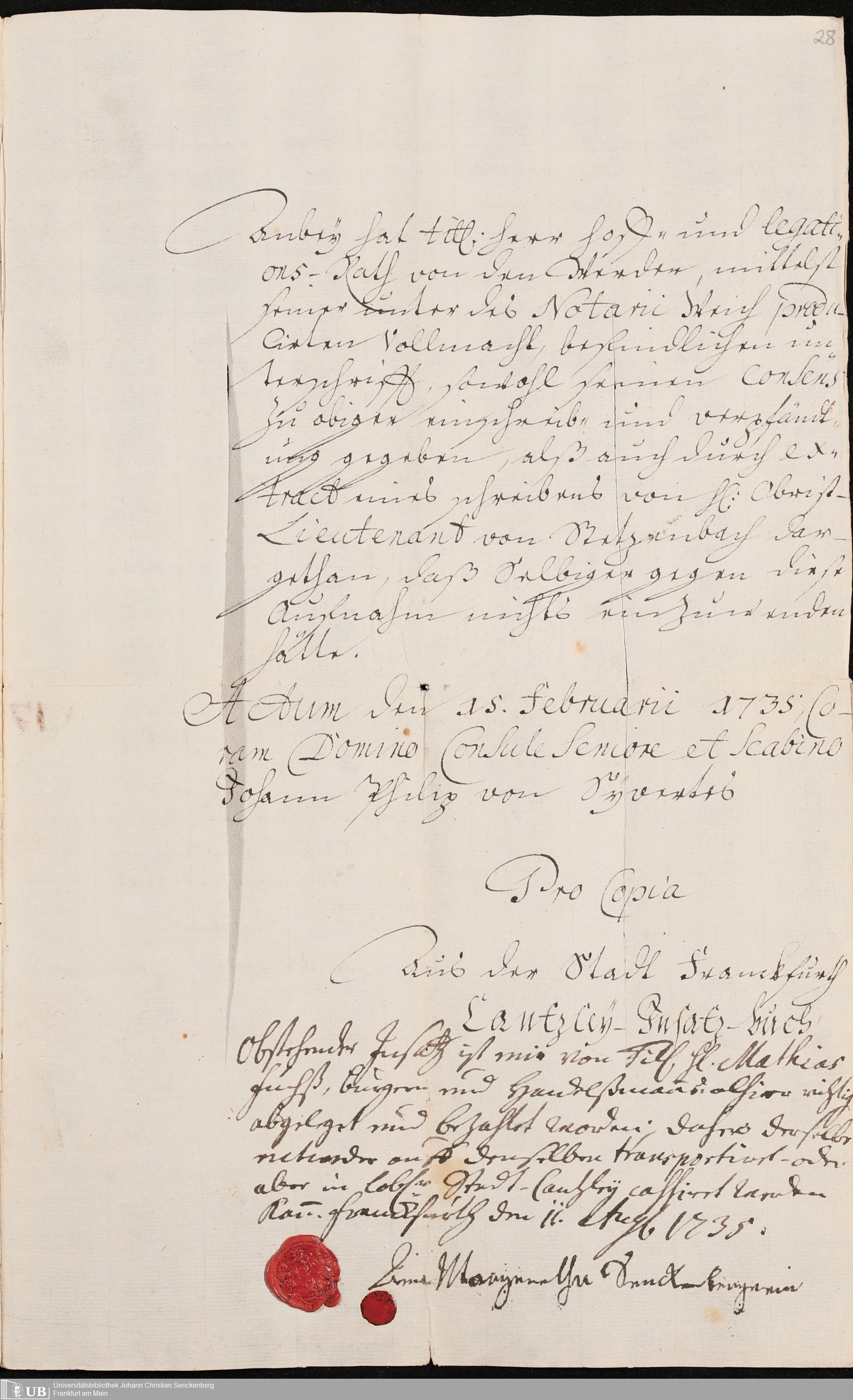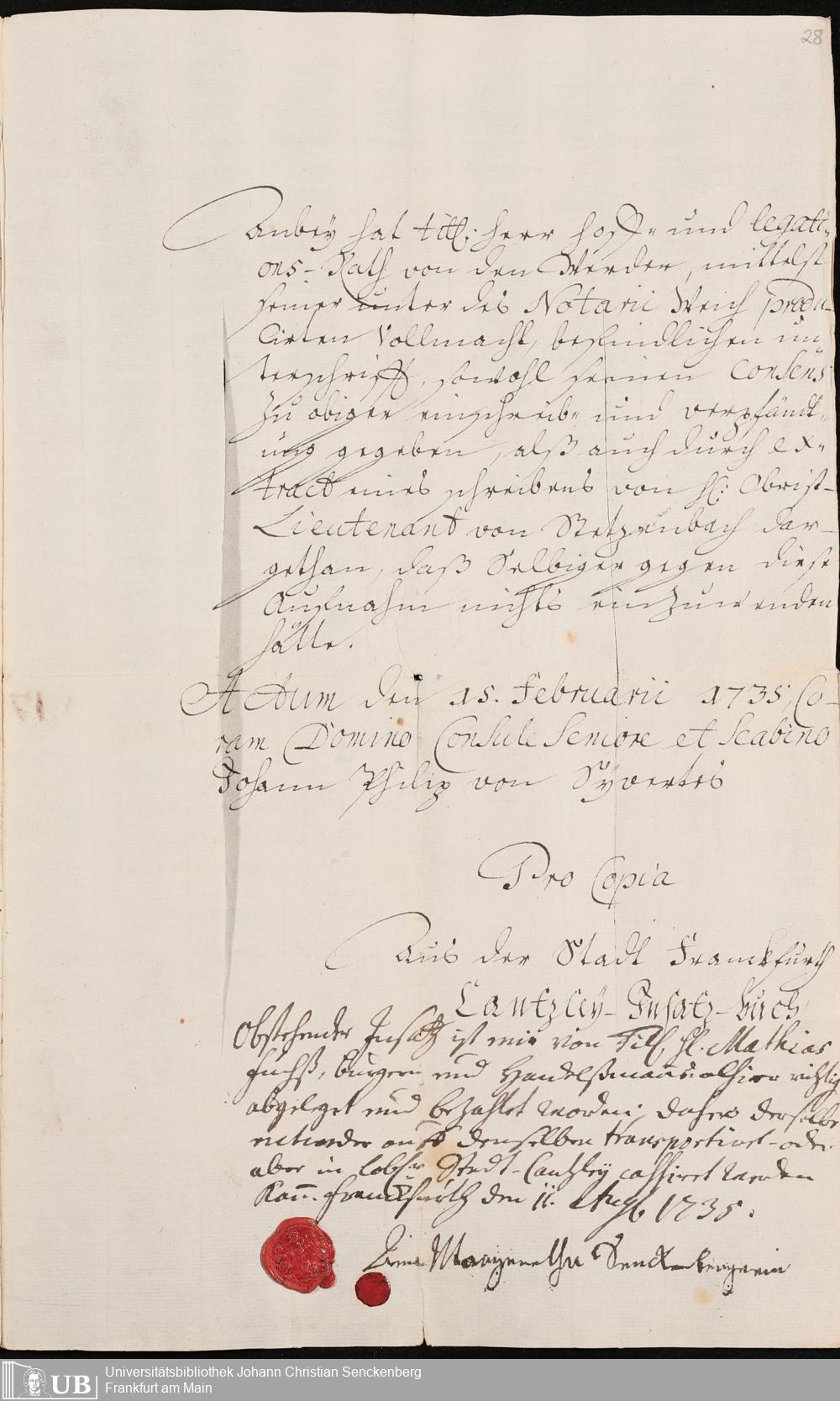 Na 31 Nachlass Johann Christian Senckenberg, 341 - Kaufurkunde über das De-Werdersche Haus