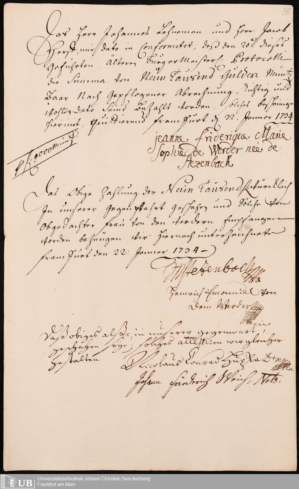 Na 31 Nachlass Johann Christian Senckenberg, 341 - Kaufurkunde über das De-Werdersche Haus