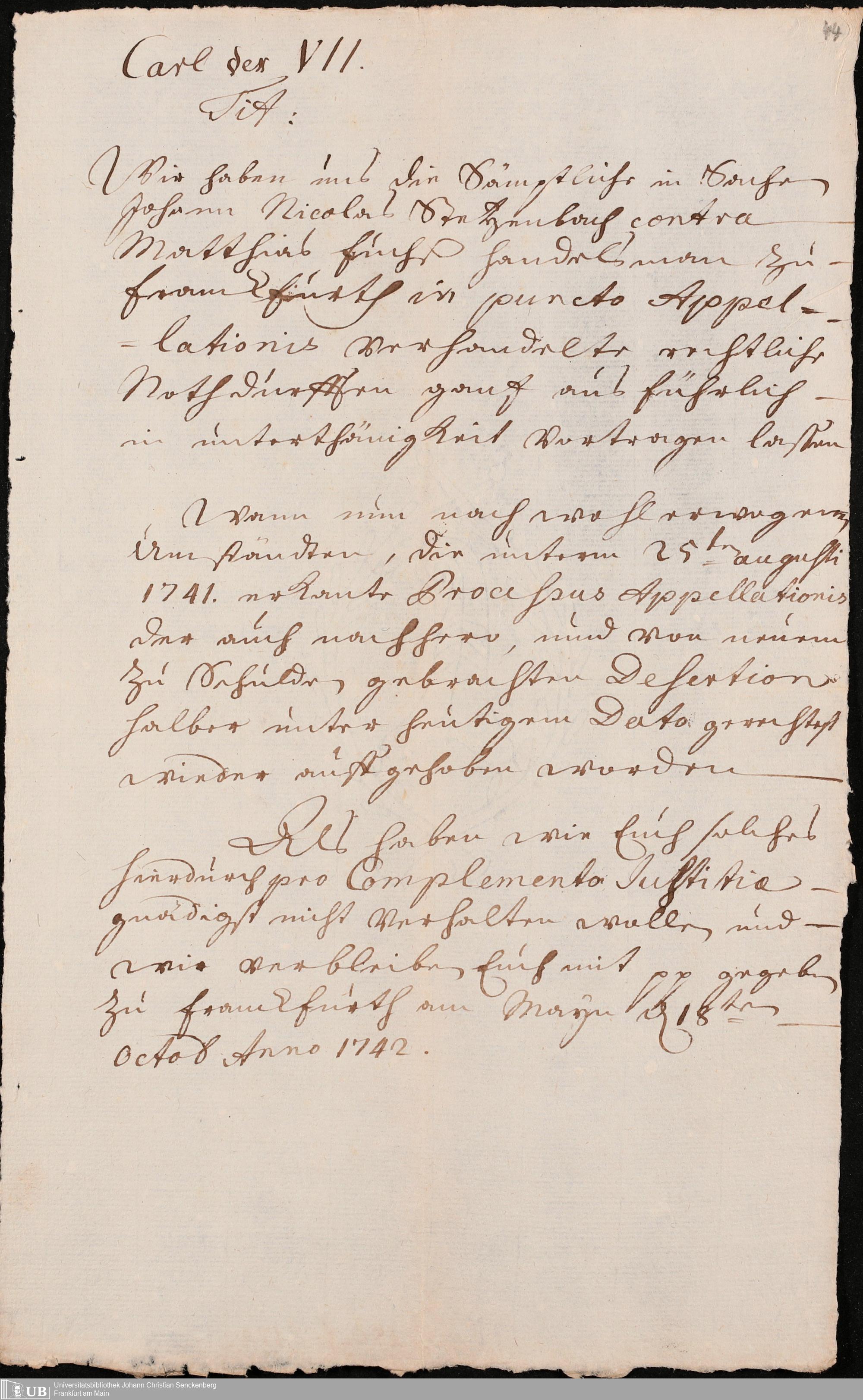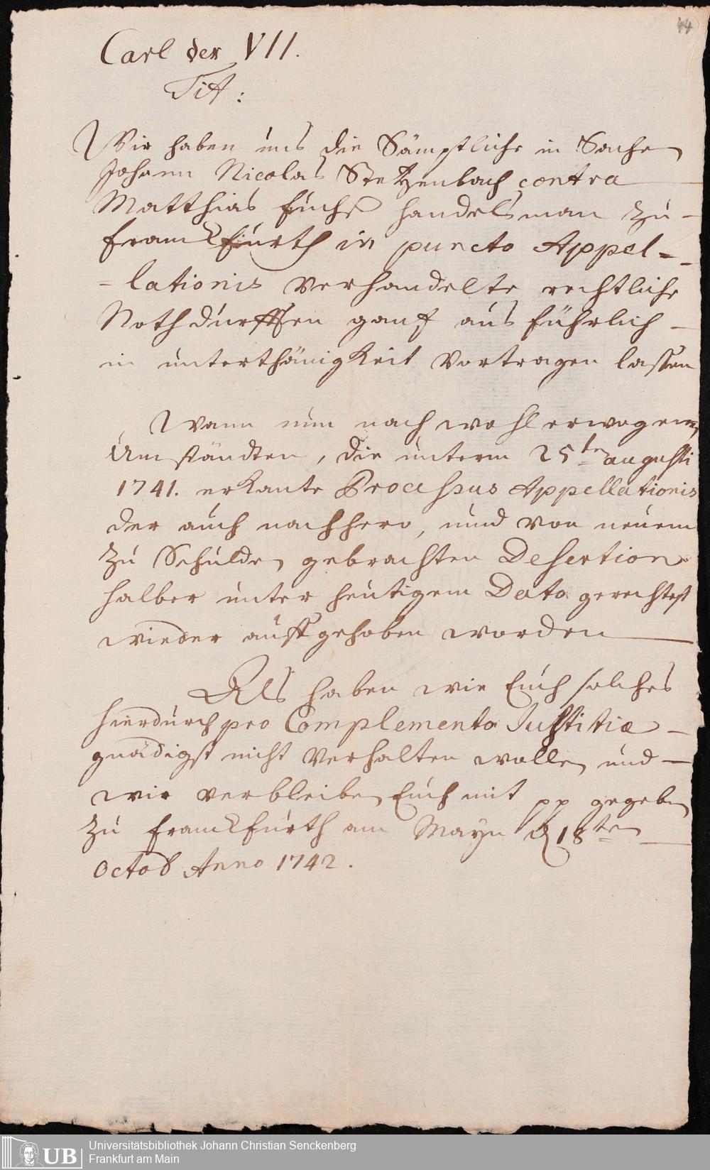 Na 31 Nachlass Johann Christian Senckenberg, 341 - Kaufurkunde über das De-Werdersche Haus