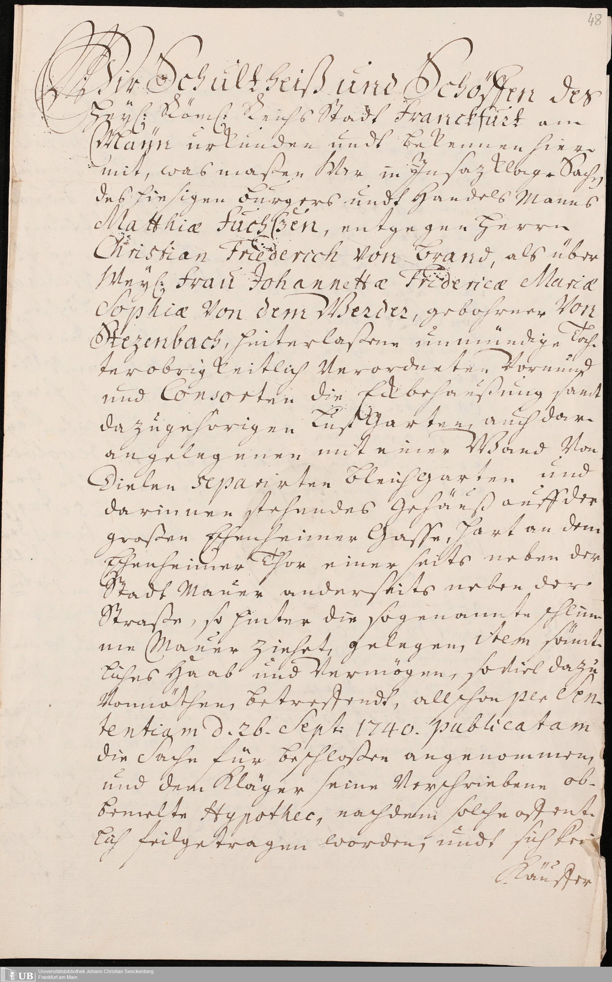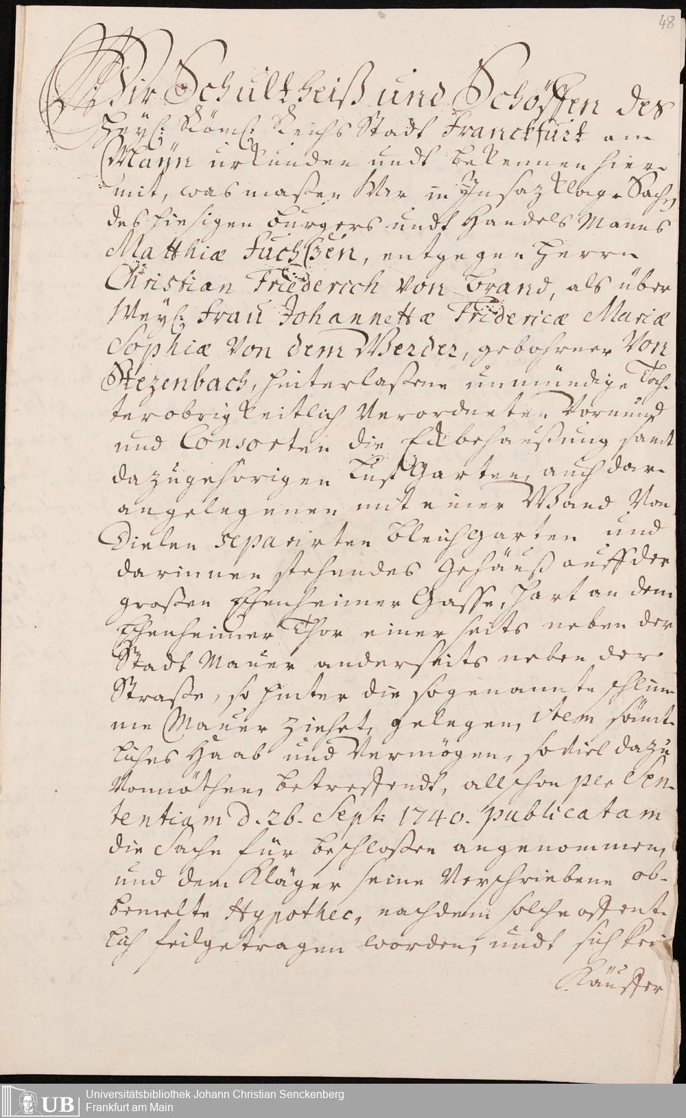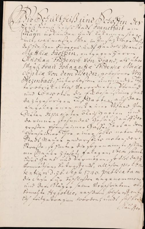 Na 31 Nachlass Johann Christian Senckenberg, 341 - Kaufurkunde über das De-Werdersche Haus