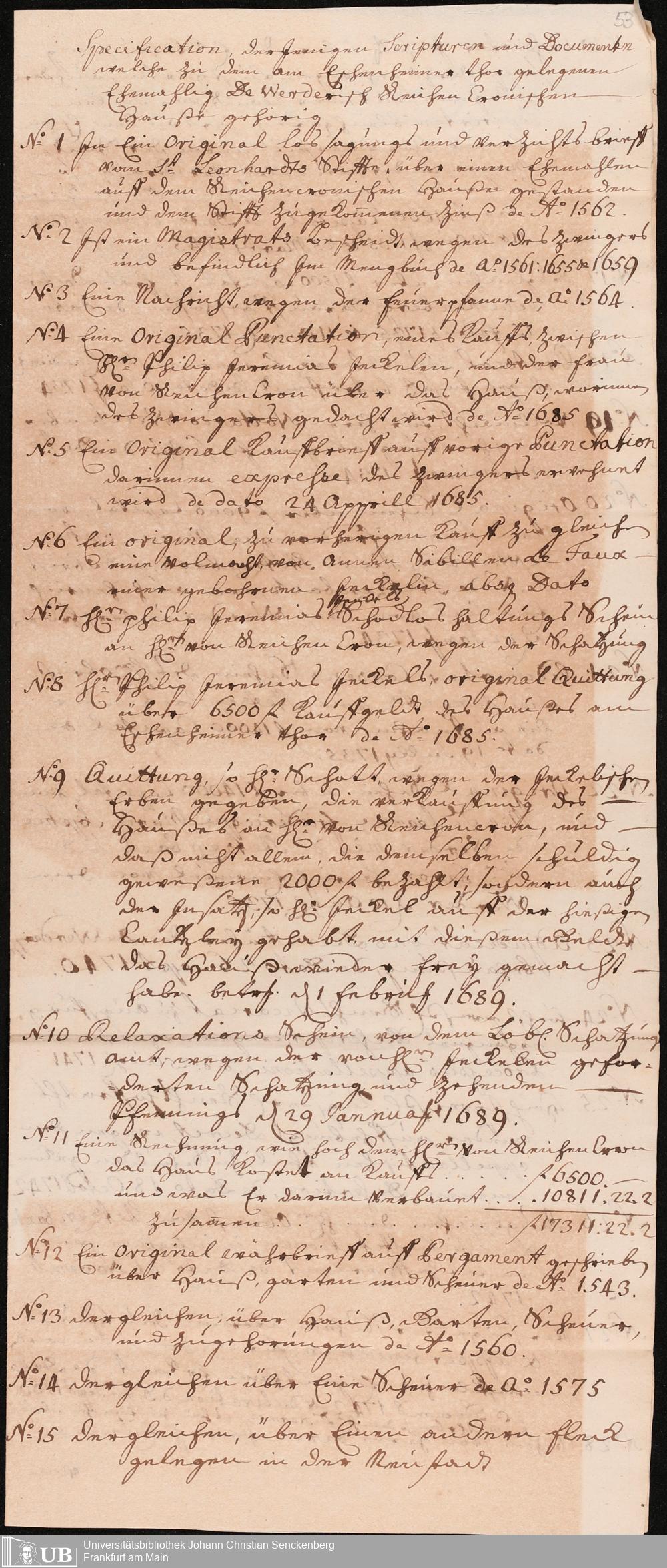 Na 31 Nachlass Johann Christian Senckenberg, 341 - Kaufurkunde über das De-Werdersche Haus