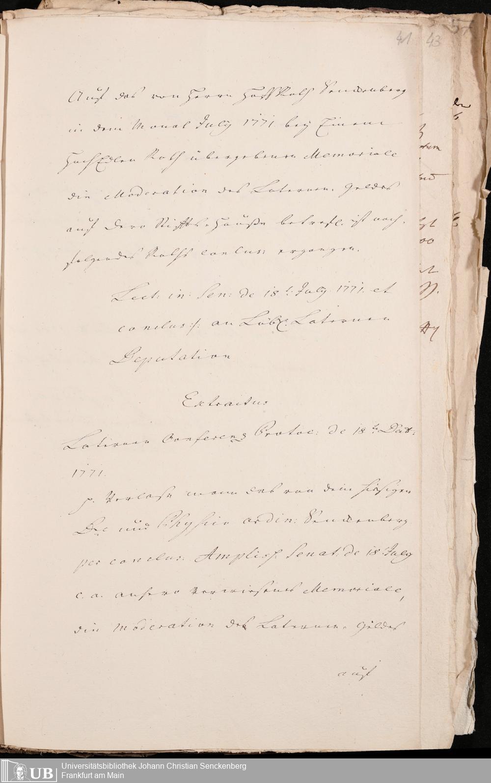 Na 31 Nachlass Johann Christian Senckenberg, 344 - Verhandlungen mit dem Bauamt, Bau des Bürgerhospital