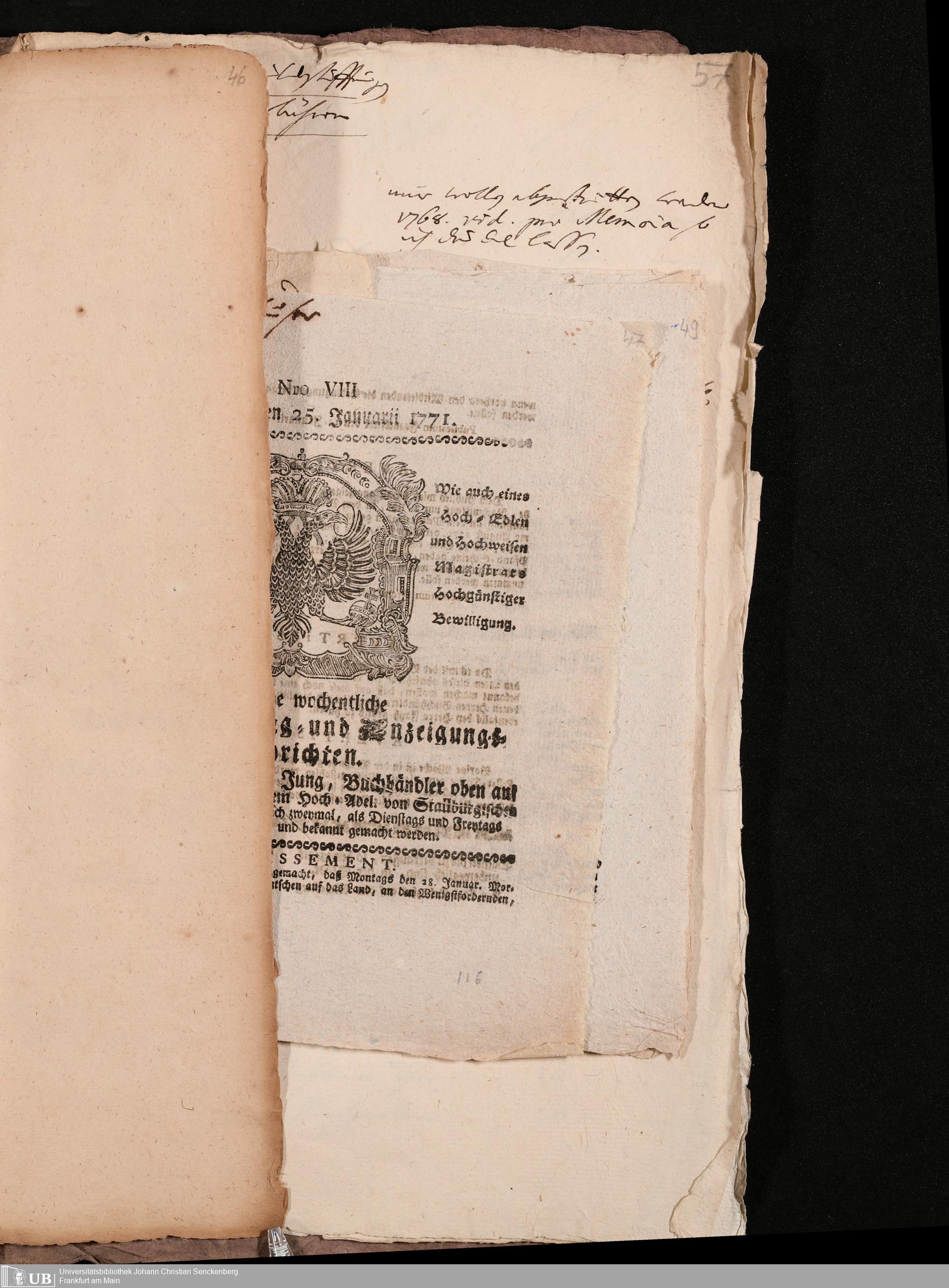 Na 31 Nachlass Johann Christian Senckenberg, 344 - Verhandlungen mit dem Bauamt, Bau des Bürgerhospital