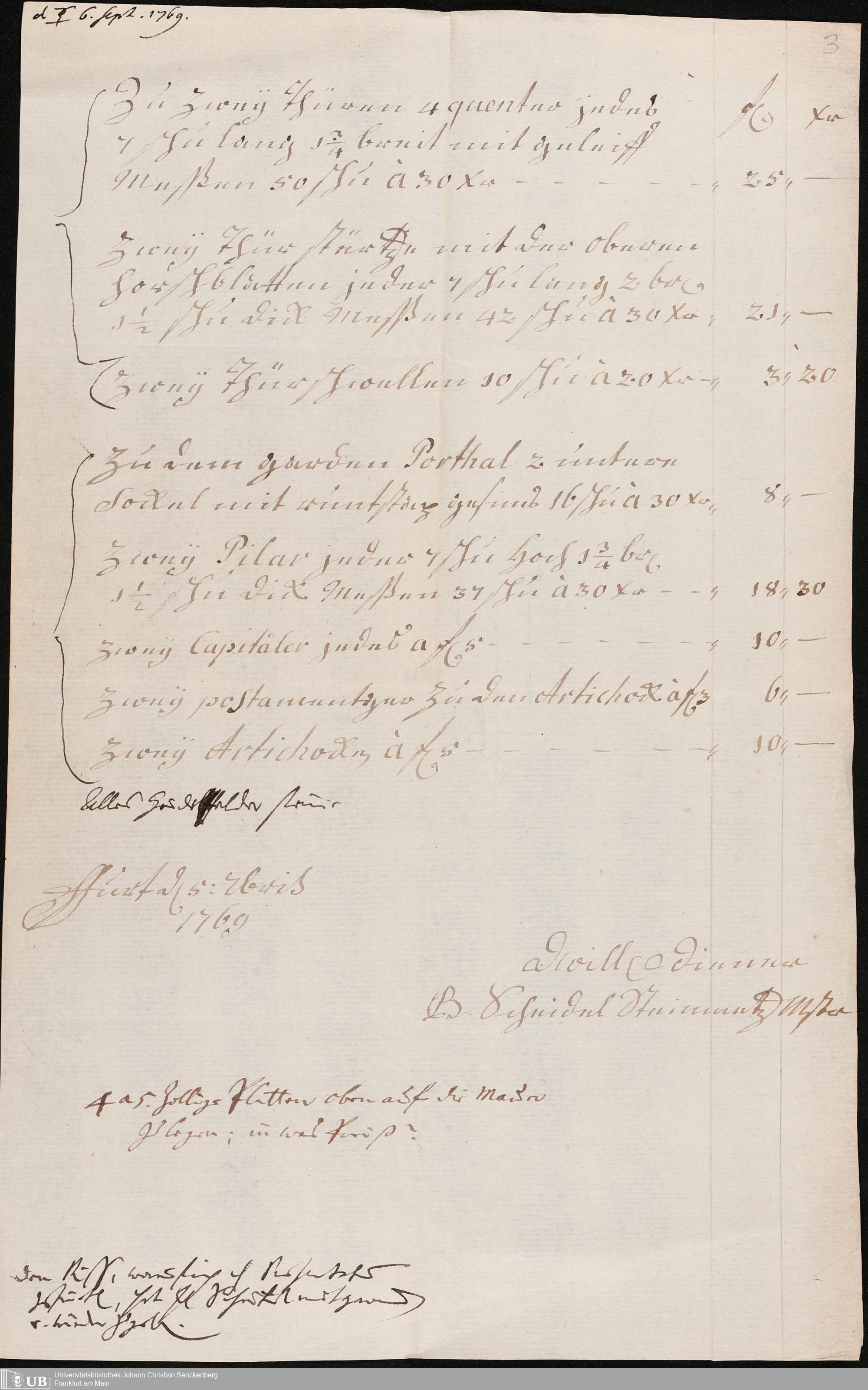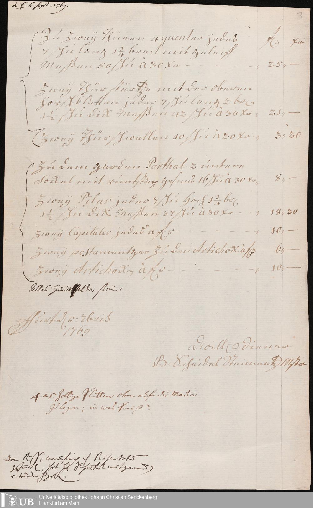 Na 31 Nachlass Johann Christian Senckenberg, 345 - Notizen Senckenbergs zu Verhandlungen sowie Rechnungen und Quittungen