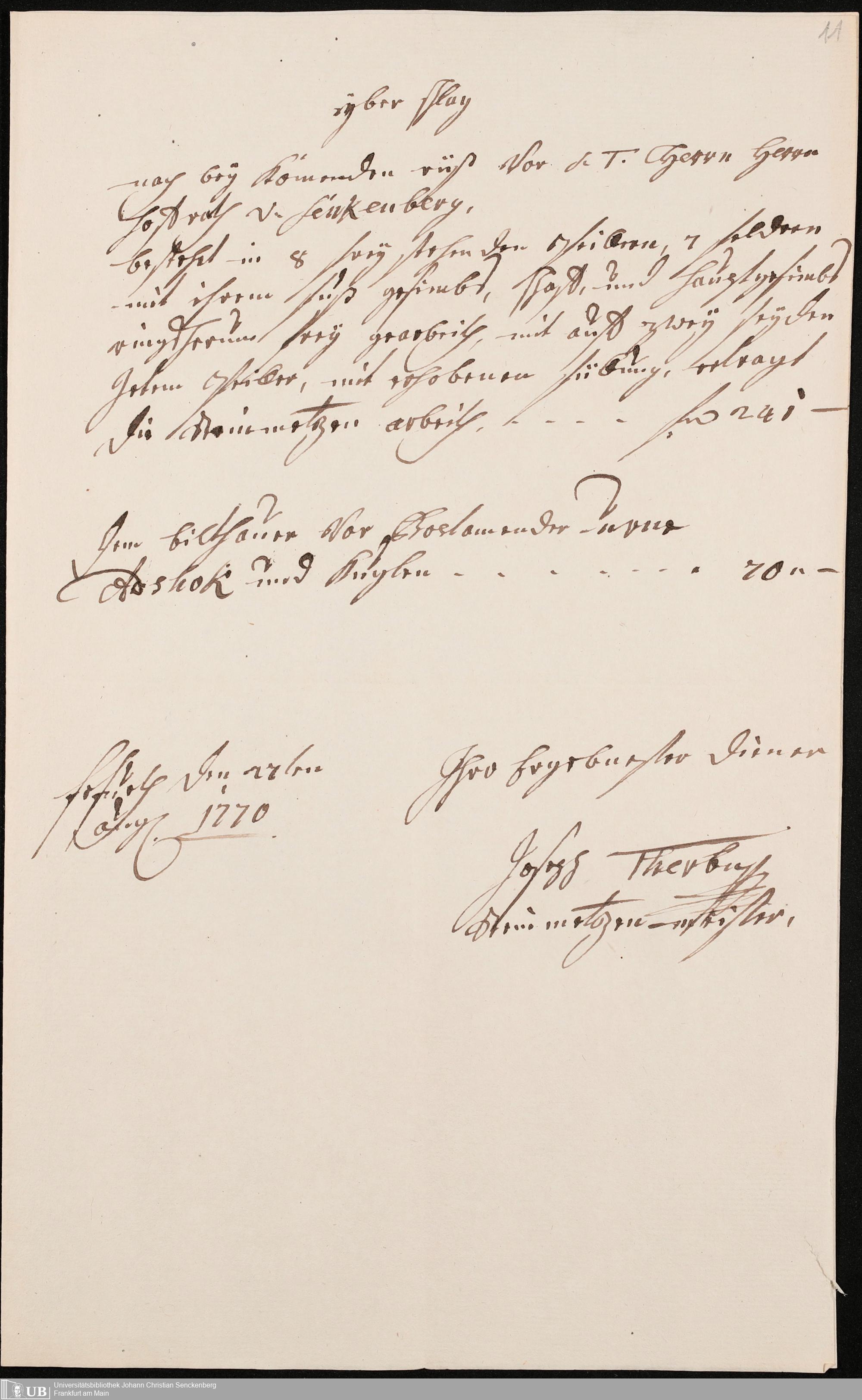 Na 31 Nachlass Johann Christian Senckenberg, 345 - Notizen Senckenbergs zu Verhandlungen sowie Rechnungen und Quittungen