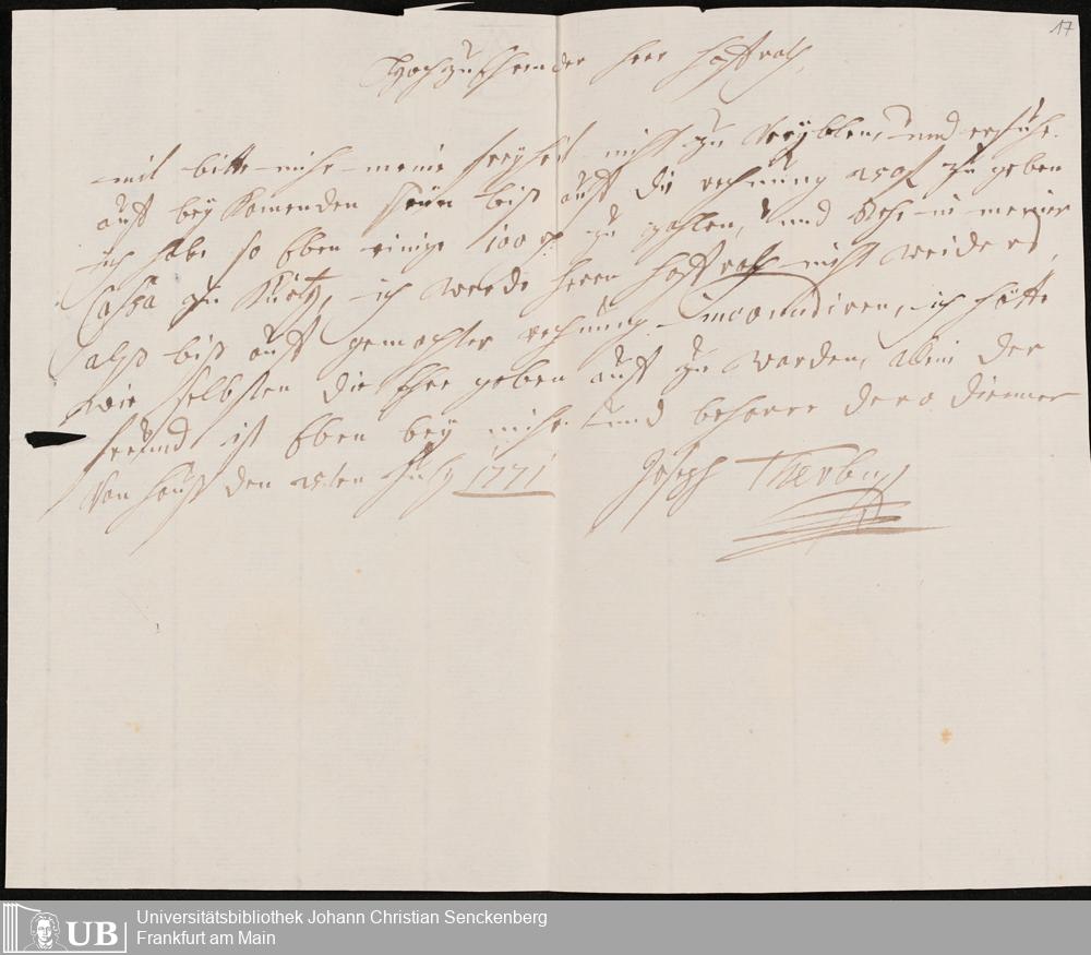 Na 31 Nachlass Johann Christian Senckenberg, 345 - Notizen Senckenbergs zu Verhandlungen sowie Rechnungen und Quittungen