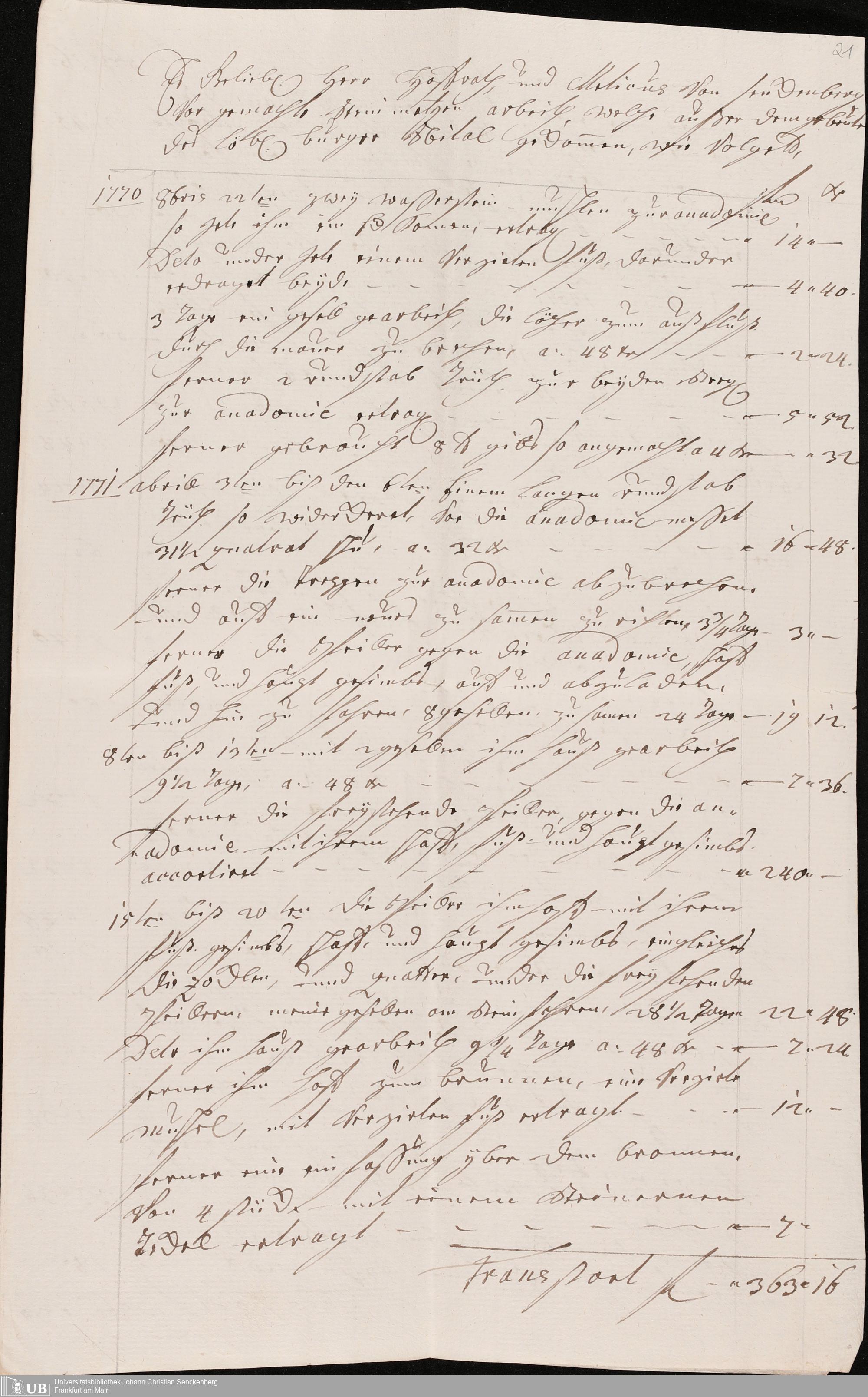 Na 31 Nachlass Johann Christian Senckenberg, 345 - Notizen Senckenbergs zu Verhandlungen sowie Rechnungen und Quittungen