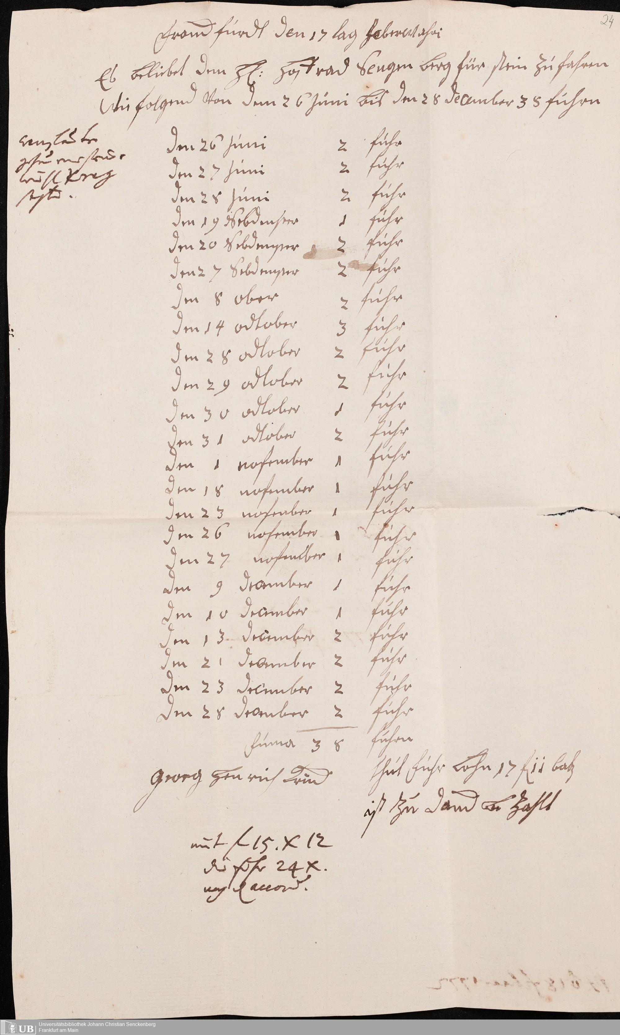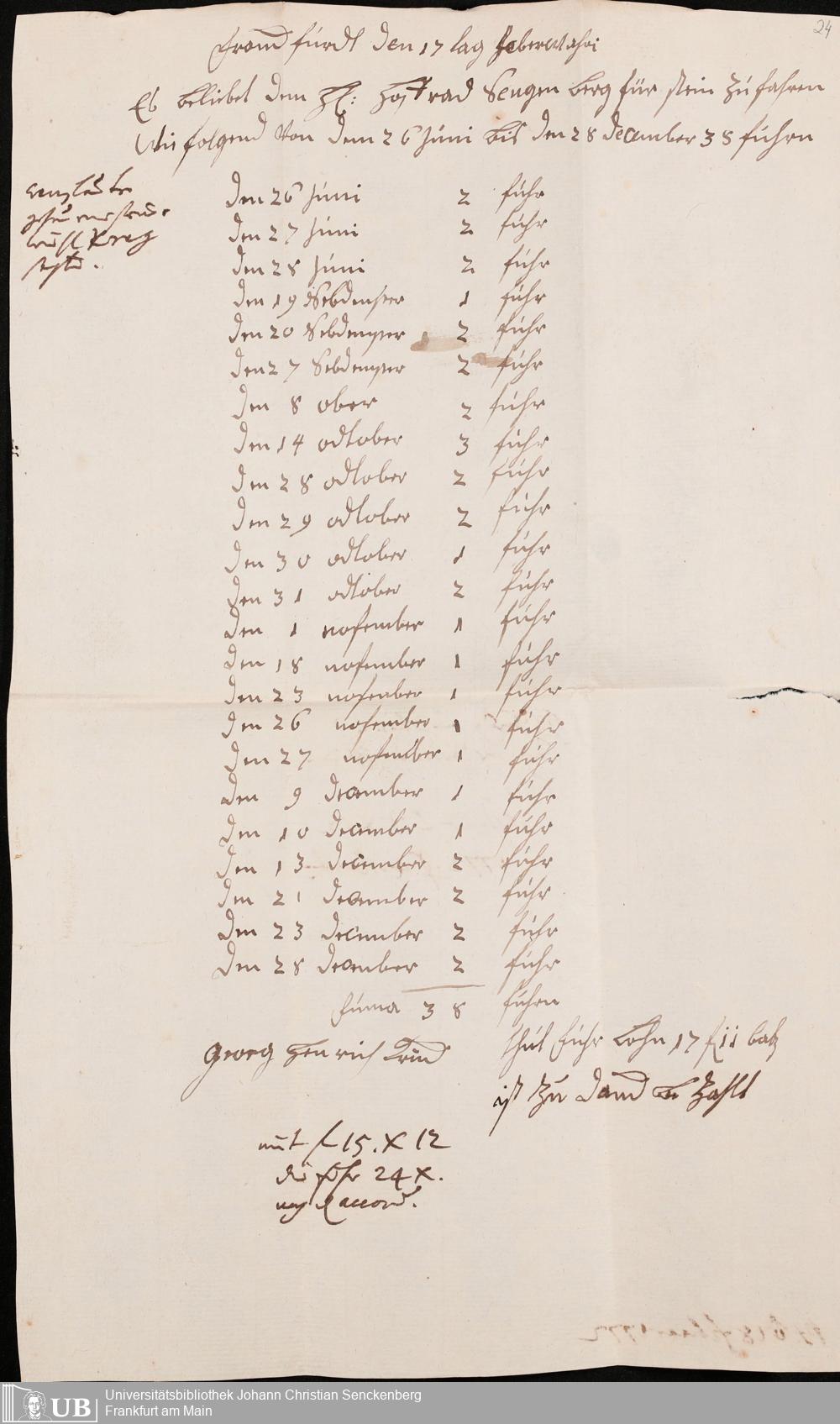 Na 31 Nachlass Johann Christian Senckenberg, 345 - Notizen Senckenbergs zu Verhandlungen sowie Rechnungen und Quittungen
