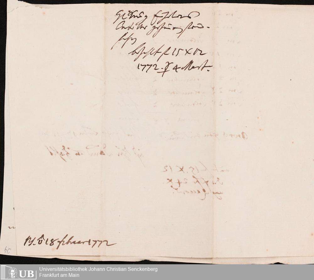 Na 31 Nachlass Johann Christian Senckenberg, 345 - Notizen Senckenbergs zu Verhandlungen sowie Rechnungen und Quittungen