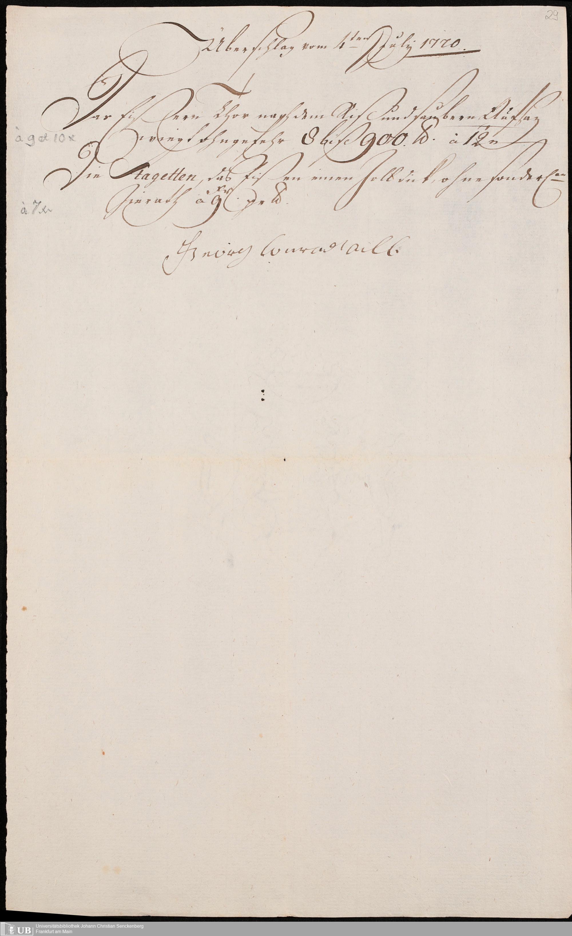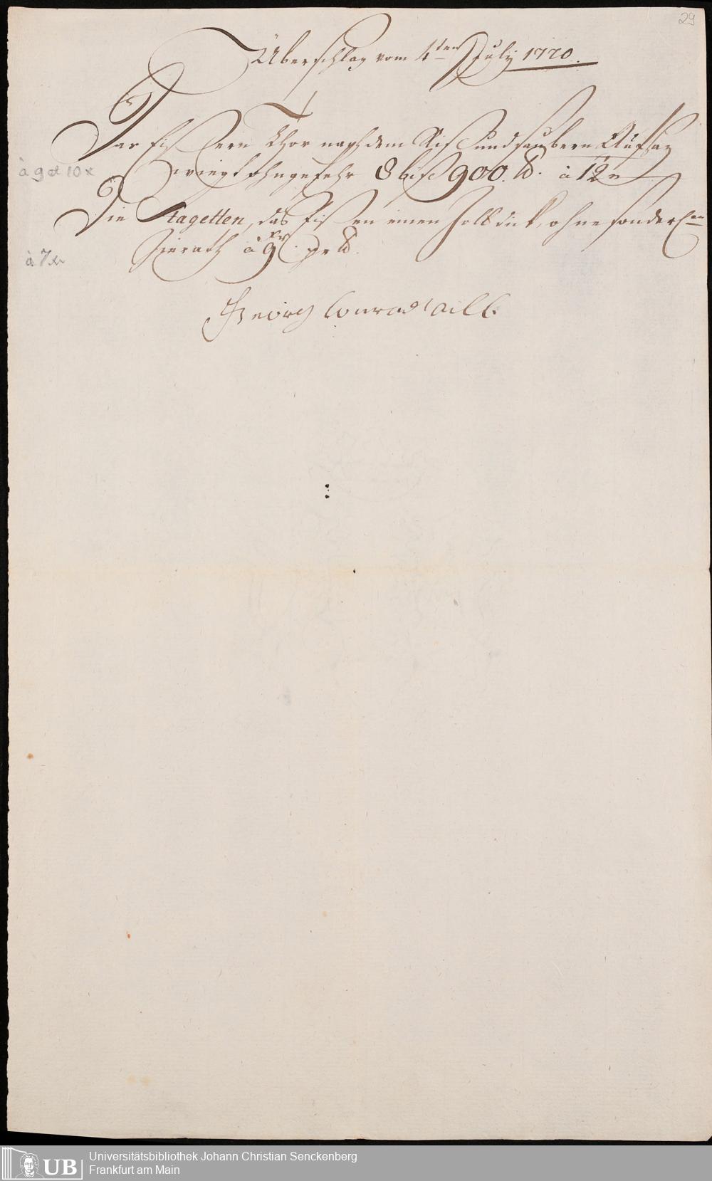 Na 31 Nachlass Johann Christian Senckenberg, 345 - Notizen Senckenbergs zu Verhandlungen sowie Rechnungen und Quittungen