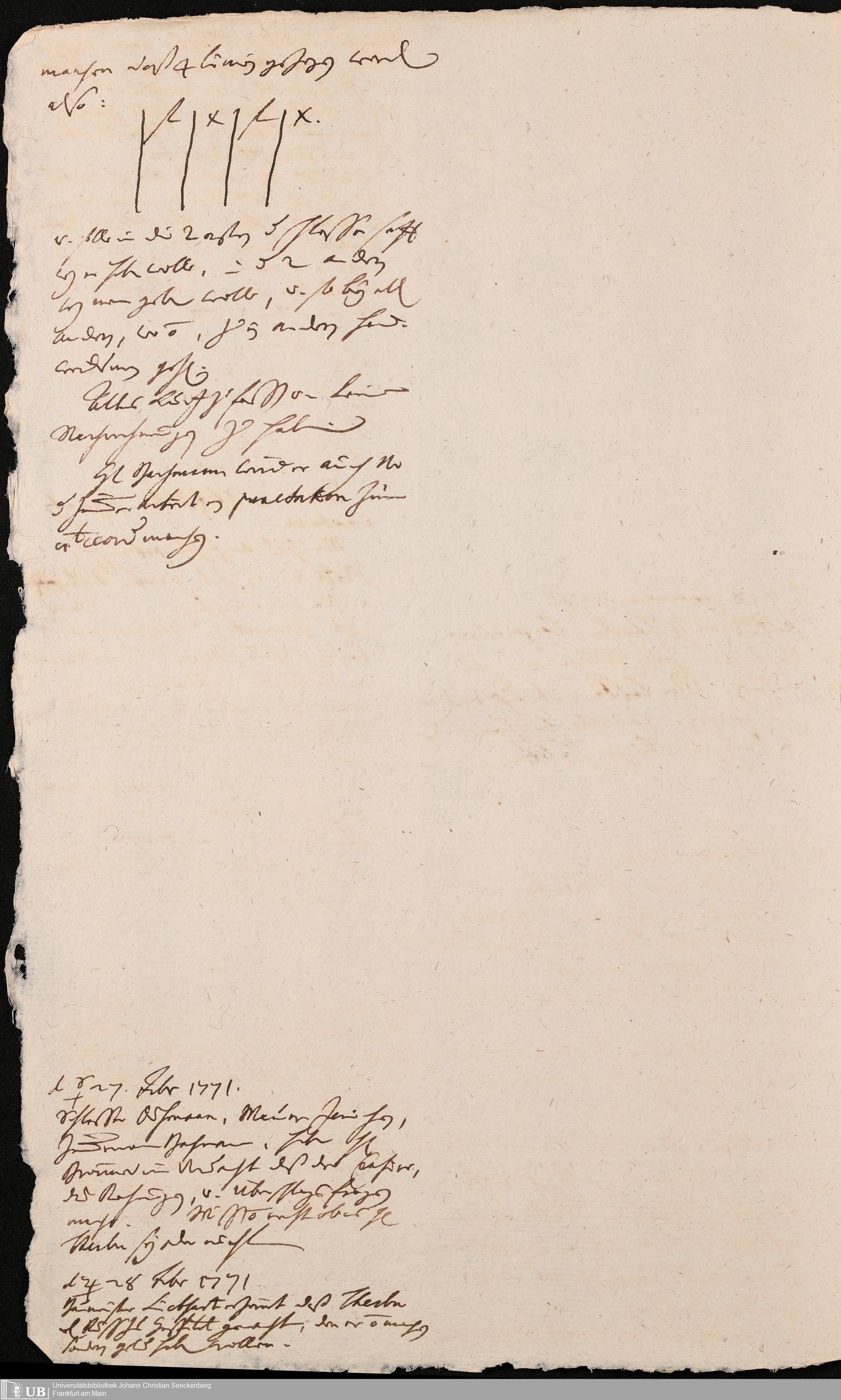 Na 31 Nachlass Johann Christian Senckenberg, 345 - Notizen Senckenbergs zu Verhandlungen sowie Rechnungen und Quittungen