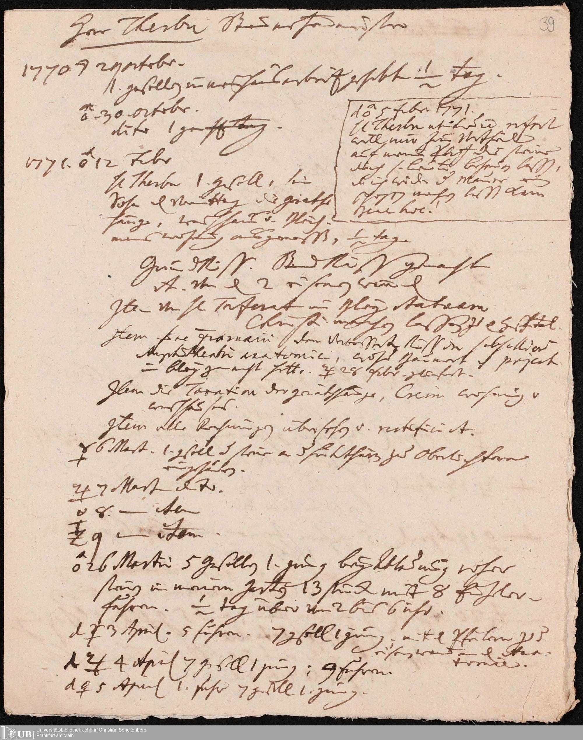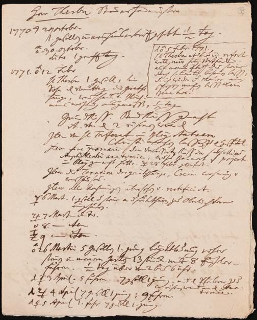 Na 31 Nachlass Johann Christian Senckenberg, 345 - Notizen Senckenbergs zu Verhandlungen sowie Rechnungen und Quittungen