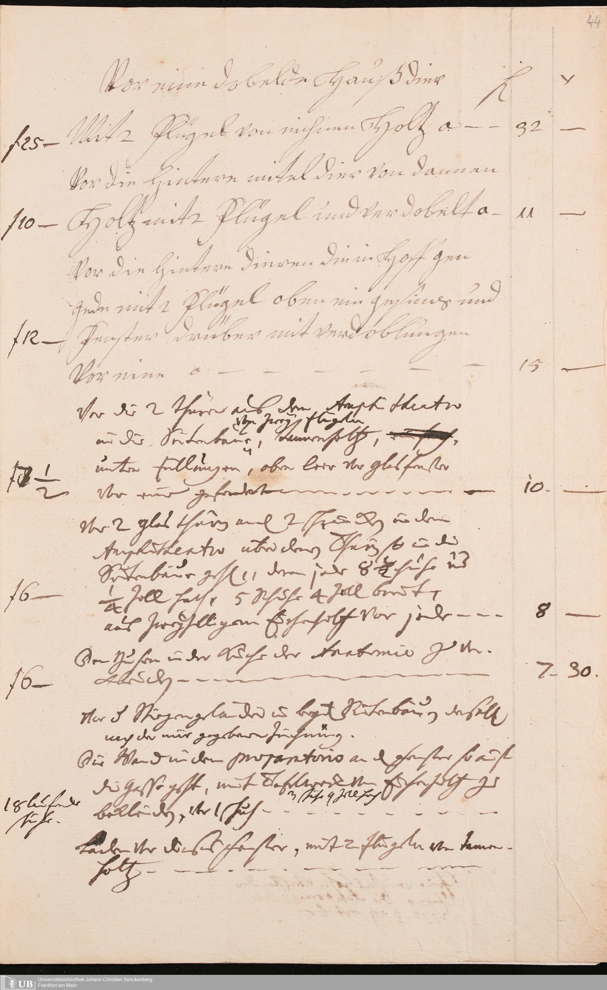 Na 31 Nachlass Johann Christian Senckenberg, 345 - Notizen Senckenbergs zu Verhandlungen sowie Rechnungen und Quittungen