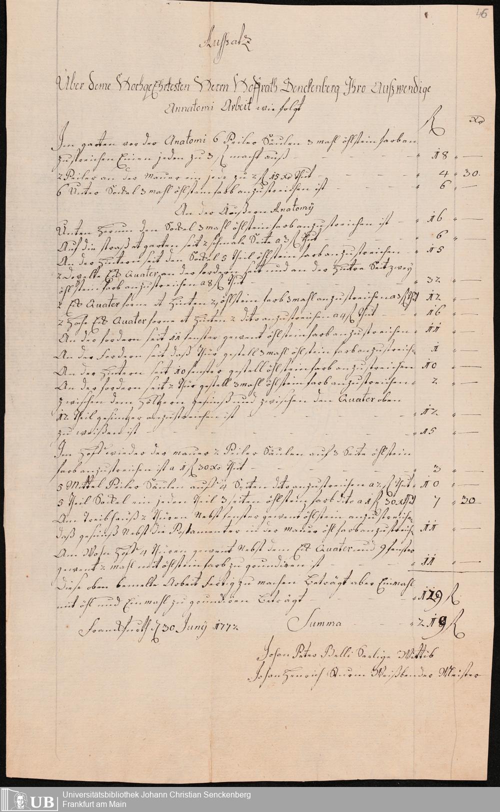 Na 31 Nachlass Johann Christian Senckenberg, 345 - Notizen Senckenbergs zu Verhandlungen sowie Rechnungen und Quittungen