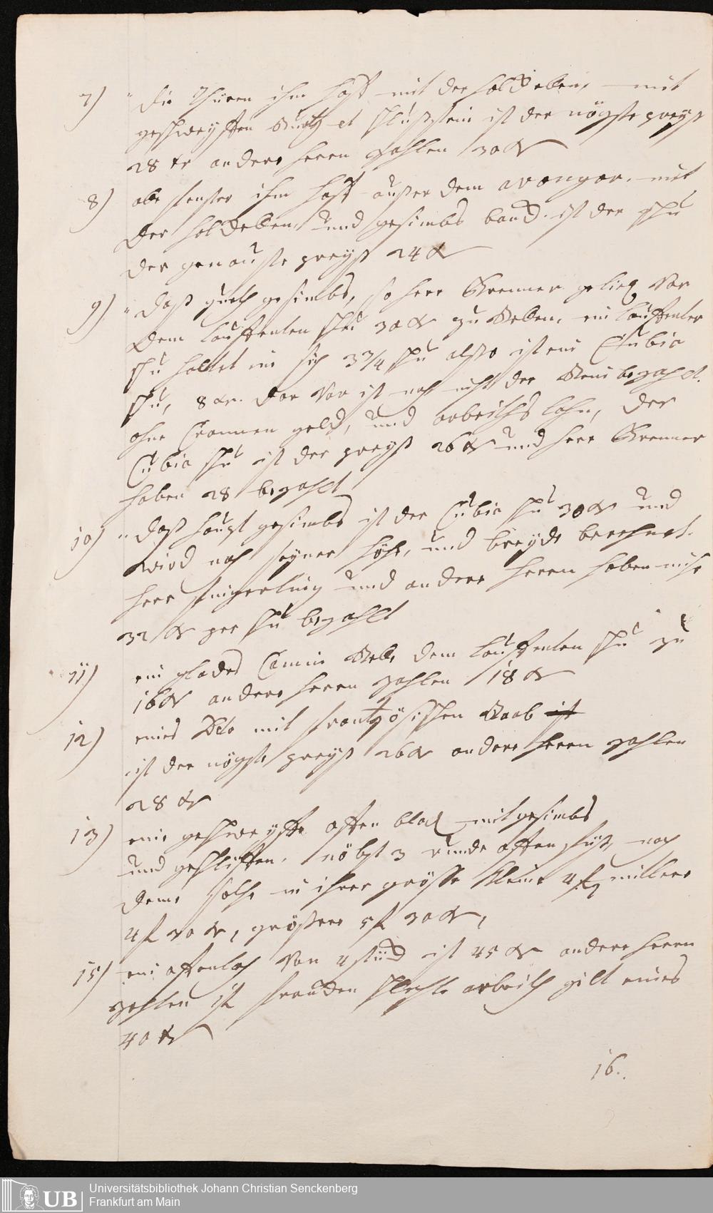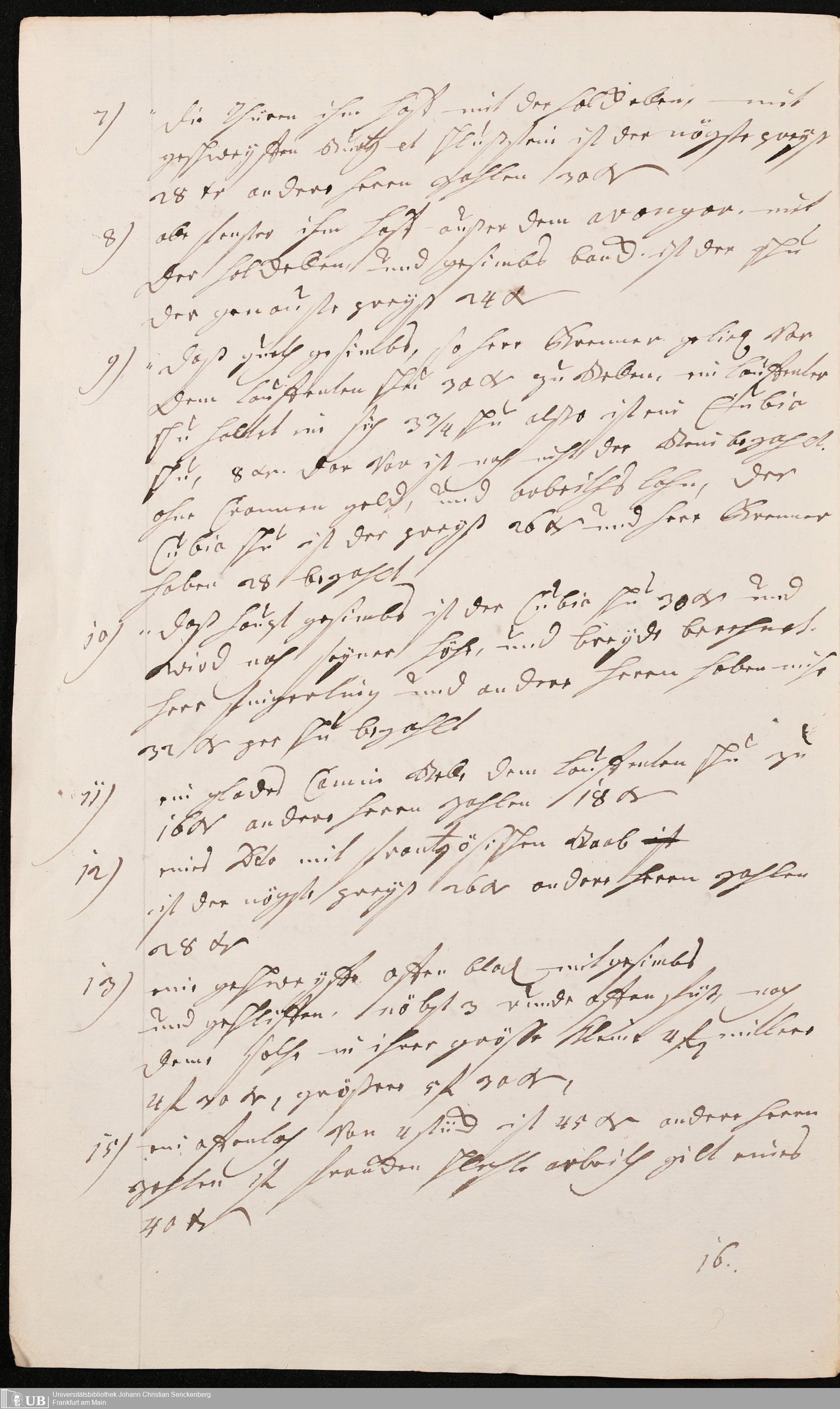Na 31 Nachlass Johann Christian Senckenberg, 345 - Notizen Senckenbergs zu Verhandlungen sowie Rechnungen und Quittungen