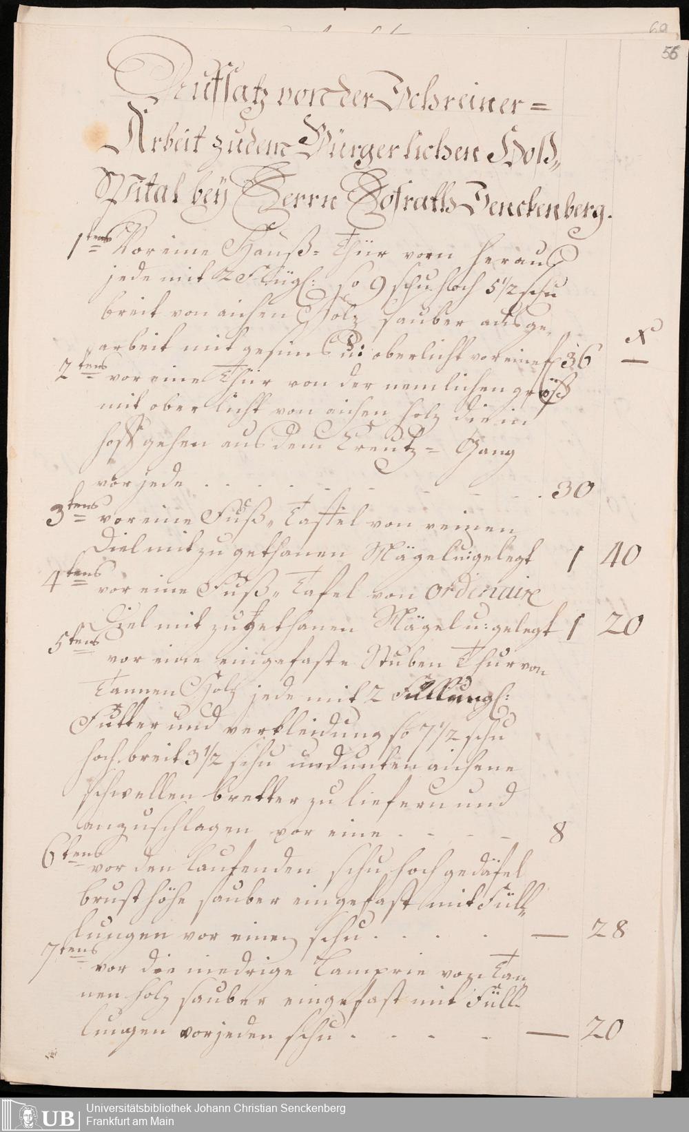 Na 31 Nachlass Johann Christian Senckenberg, 345 - Notizen Senckenbergs zu Verhandlungen sowie Rechnungen und Quittungen