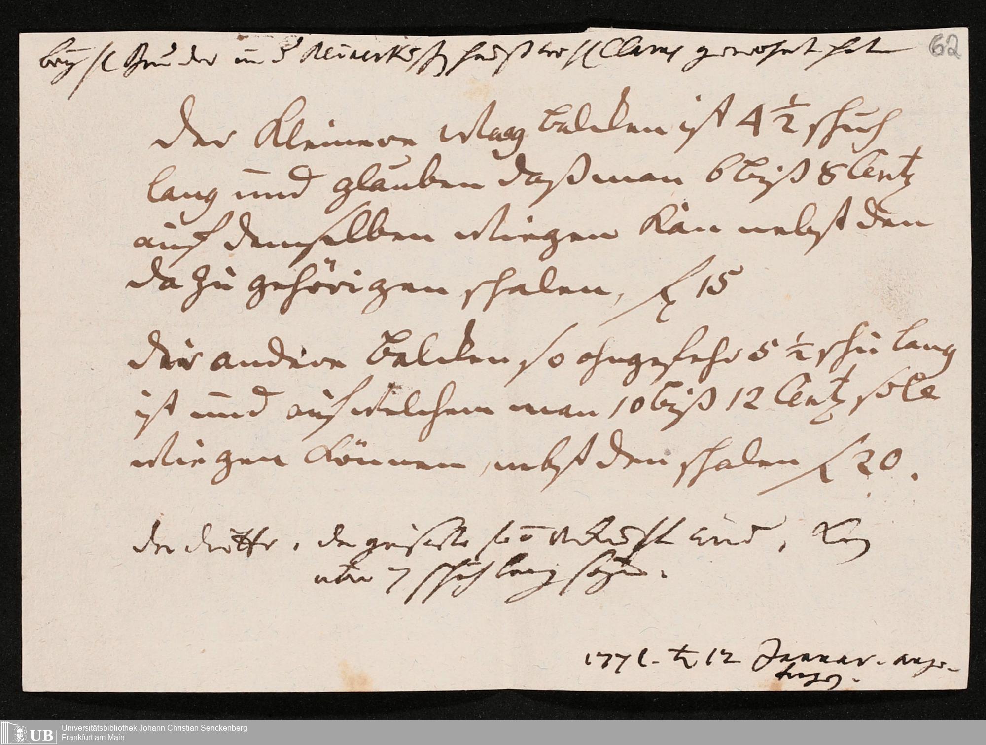 Na 31 Nachlass Johann Christian Senckenberg, 345 - Notizen Senckenbergs zu Verhandlungen sowie Rechnungen und Quittungen