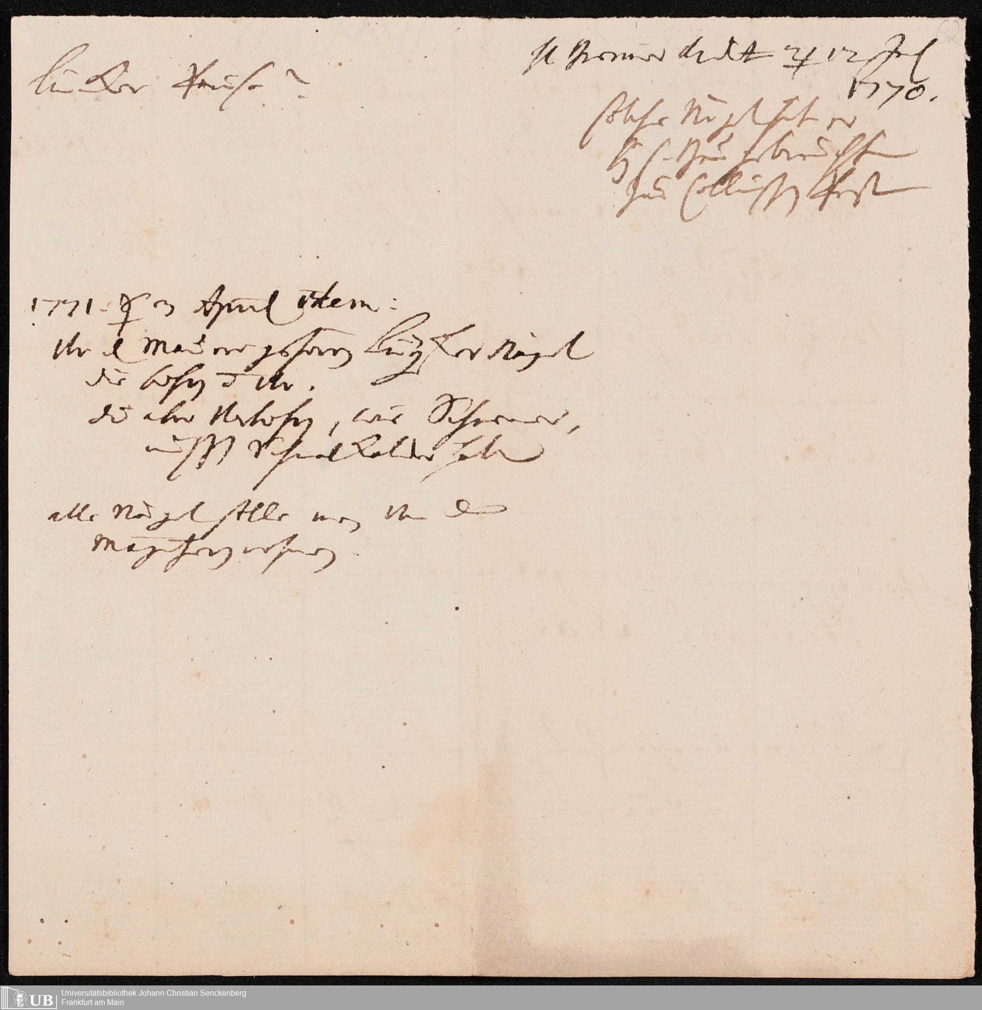 Na 31 Nachlass Johann Christian Senckenberg, 345 - Notizen Senckenbergs zu Verhandlungen sowie Rechnungen und Quittungen