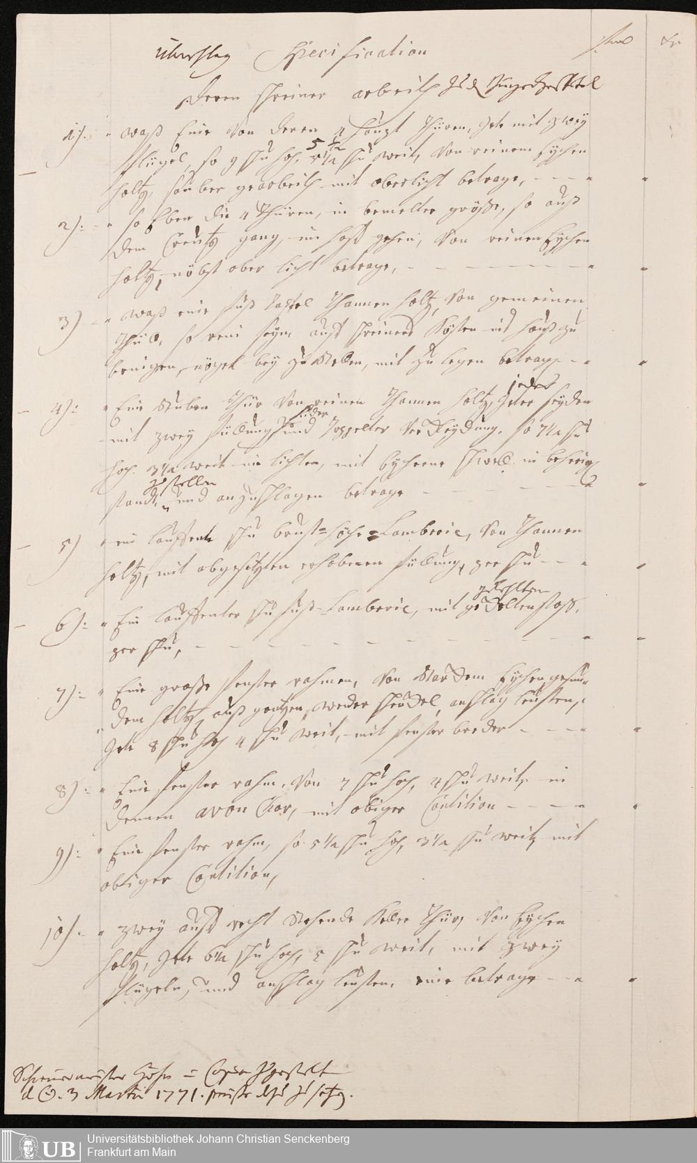 Na 31 Nachlass Johann Christian Senckenberg, 345 - Notizen Senckenbergs zu Verhandlungen sowie Rechnungen und Quittungen