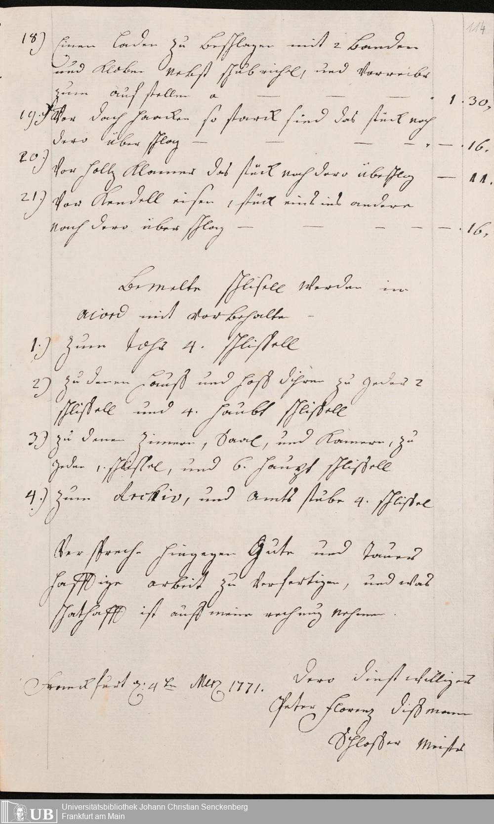 Na 31 Nachlass Johann Christian Senckenberg, 345 - Notizen Senckenbergs zu Verhandlungen sowie Rechnungen und Quittungen