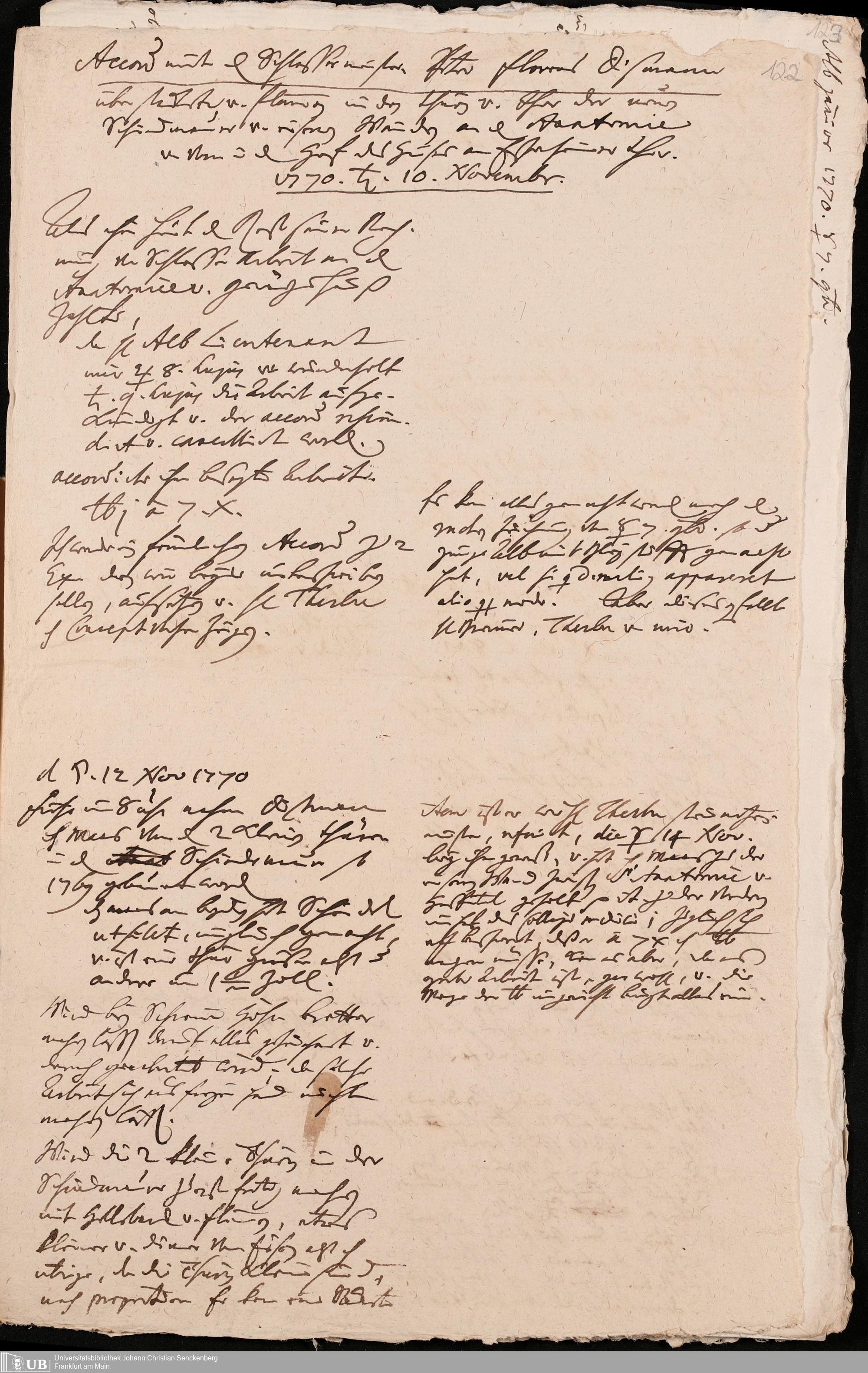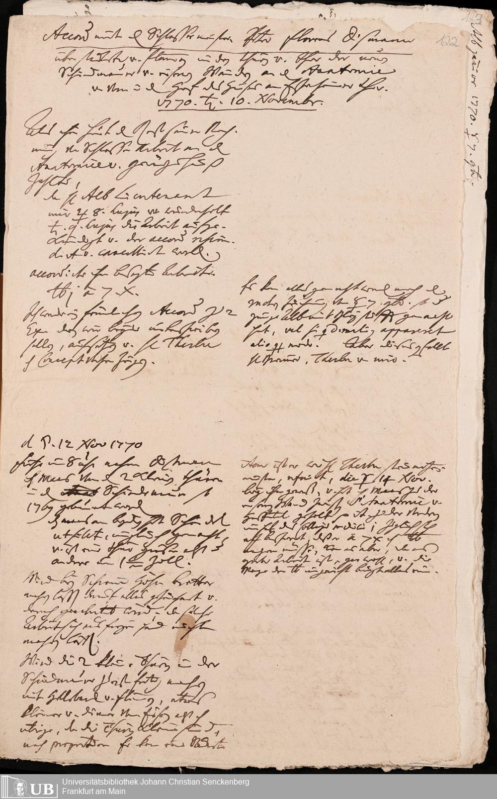Na 31 Nachlass Johann Christian Senckenberg, 345 - Notizen Senckenbergs zu Verhandlungen sowie Rechnungen und Quittungen