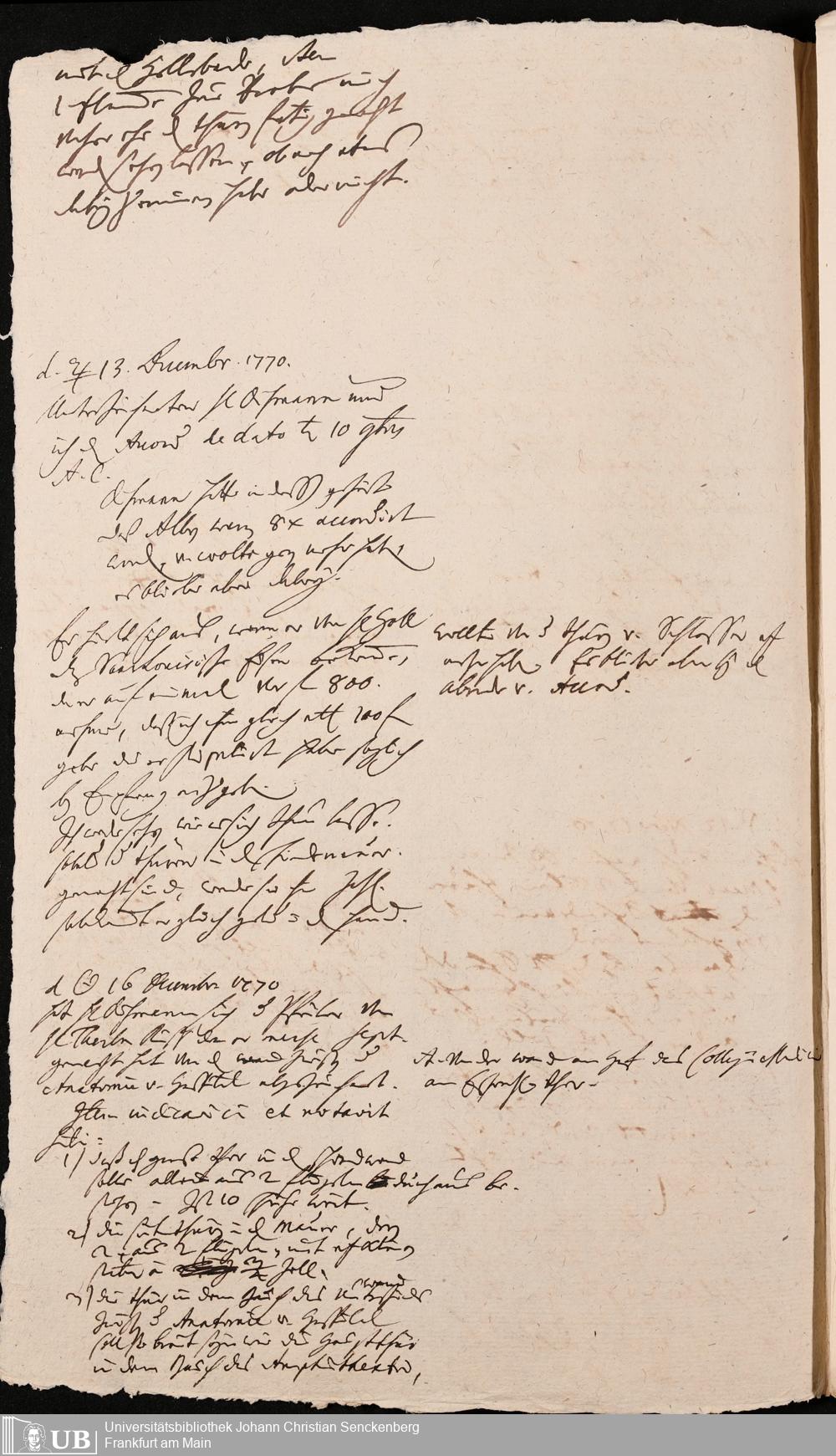 Na 31 Nachlass Johann Christian Senckenberg, 345 - Notizen Senckenbergs zu Verhandlungen sowie Rechnungen und Quittungen