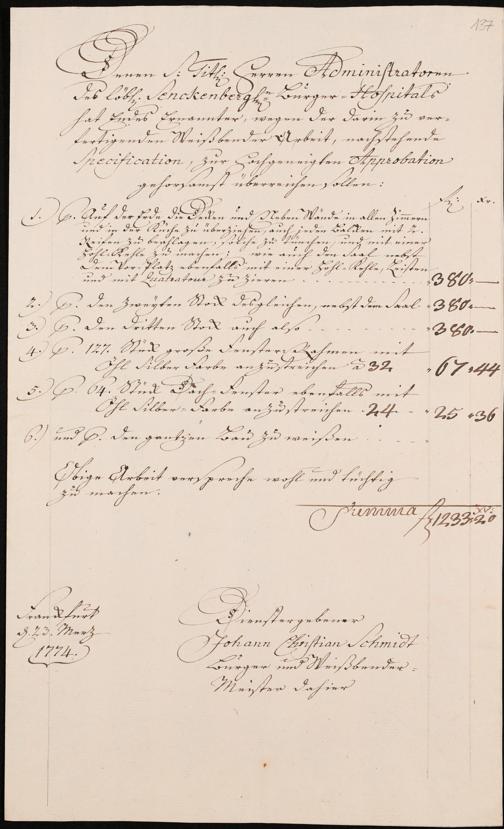 Na 31 Nachlass Johann Christian Senckenberg, 345 - Notizen Senckenbergs zu Verhandlungen sowie Rechnungen und Quittungen