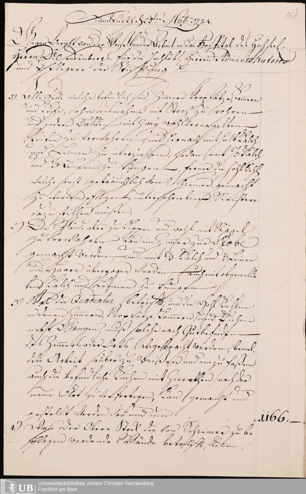 Na 31 Nachlass Johann Christian Senckenberg, 345 - Notizen Senckenbergs zu Verhandlungen sowie Rechnungen und Quittungen