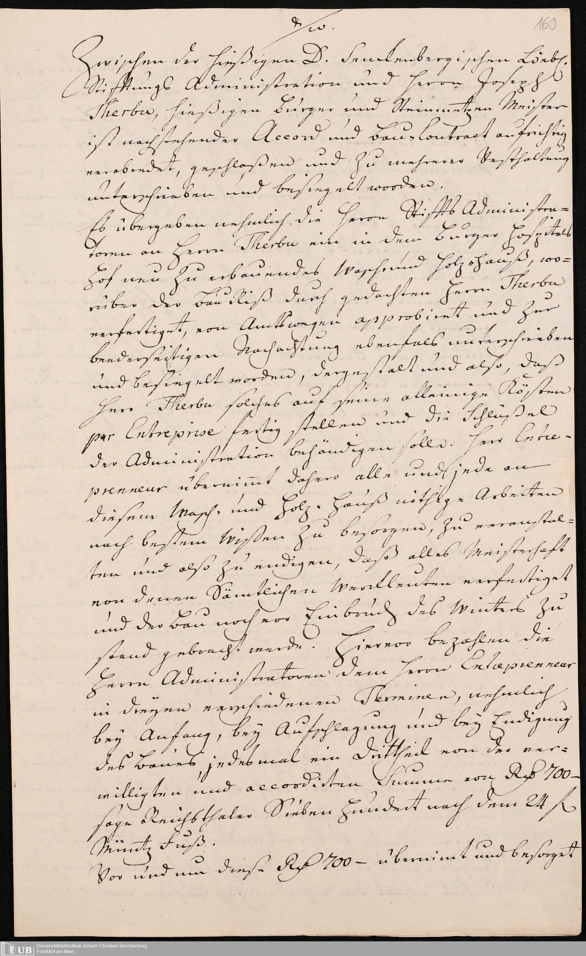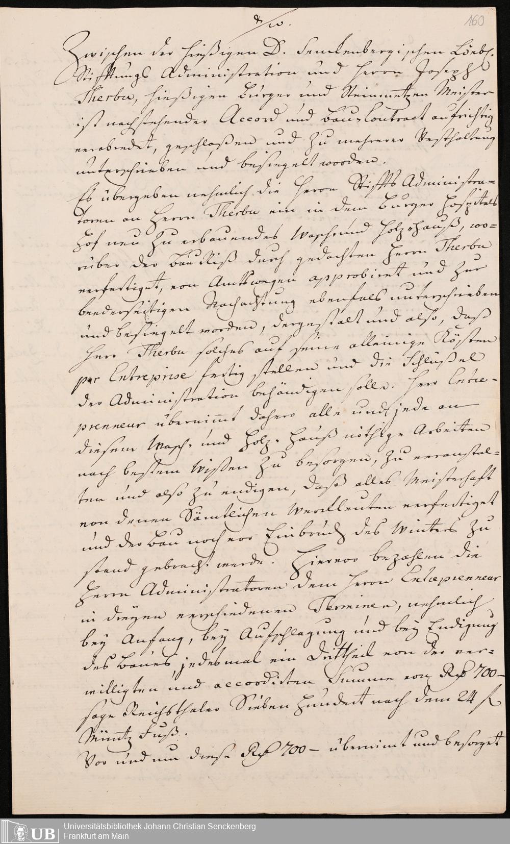 Na 31 Nachlass Johann Christian Senckenberg, 345 - Notizen Senckenbergs zu Verhandlungen sowie Rechnungen und Quittungen