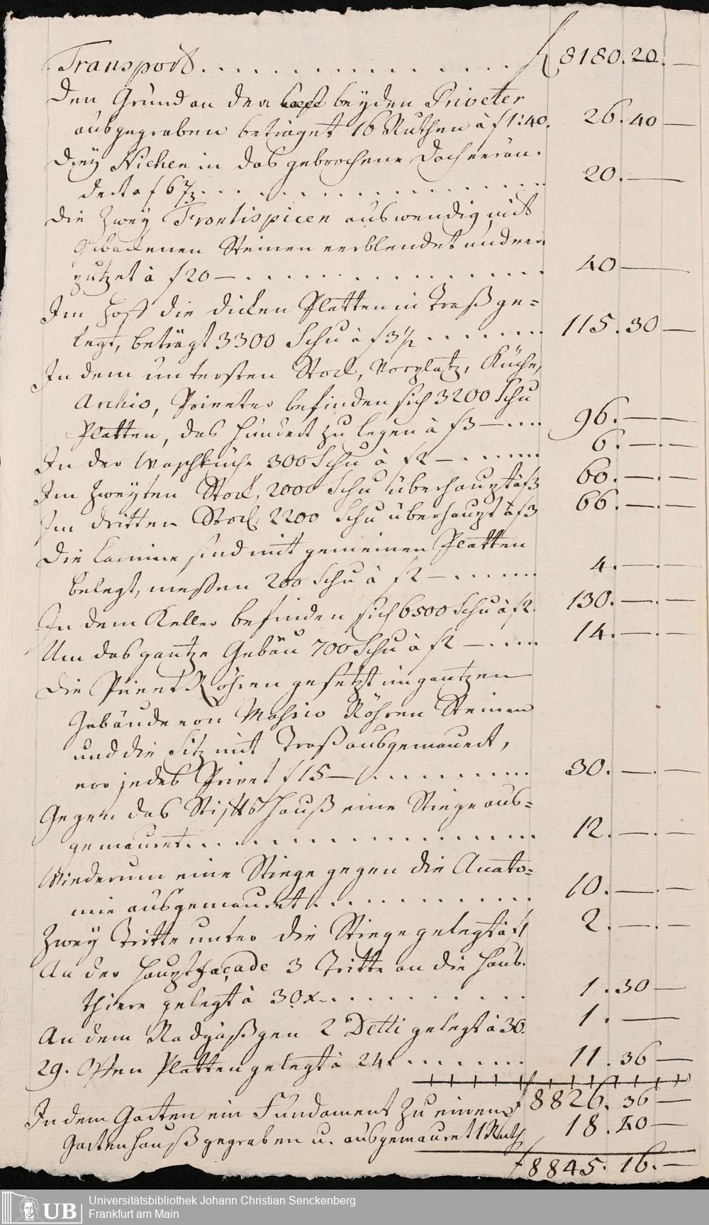 Na 31 Nachlass Johann Christian Senckenberg, 345 - Notizen Senckenbergs zu Verhandlungen sowie Rechnungen und Quittungen