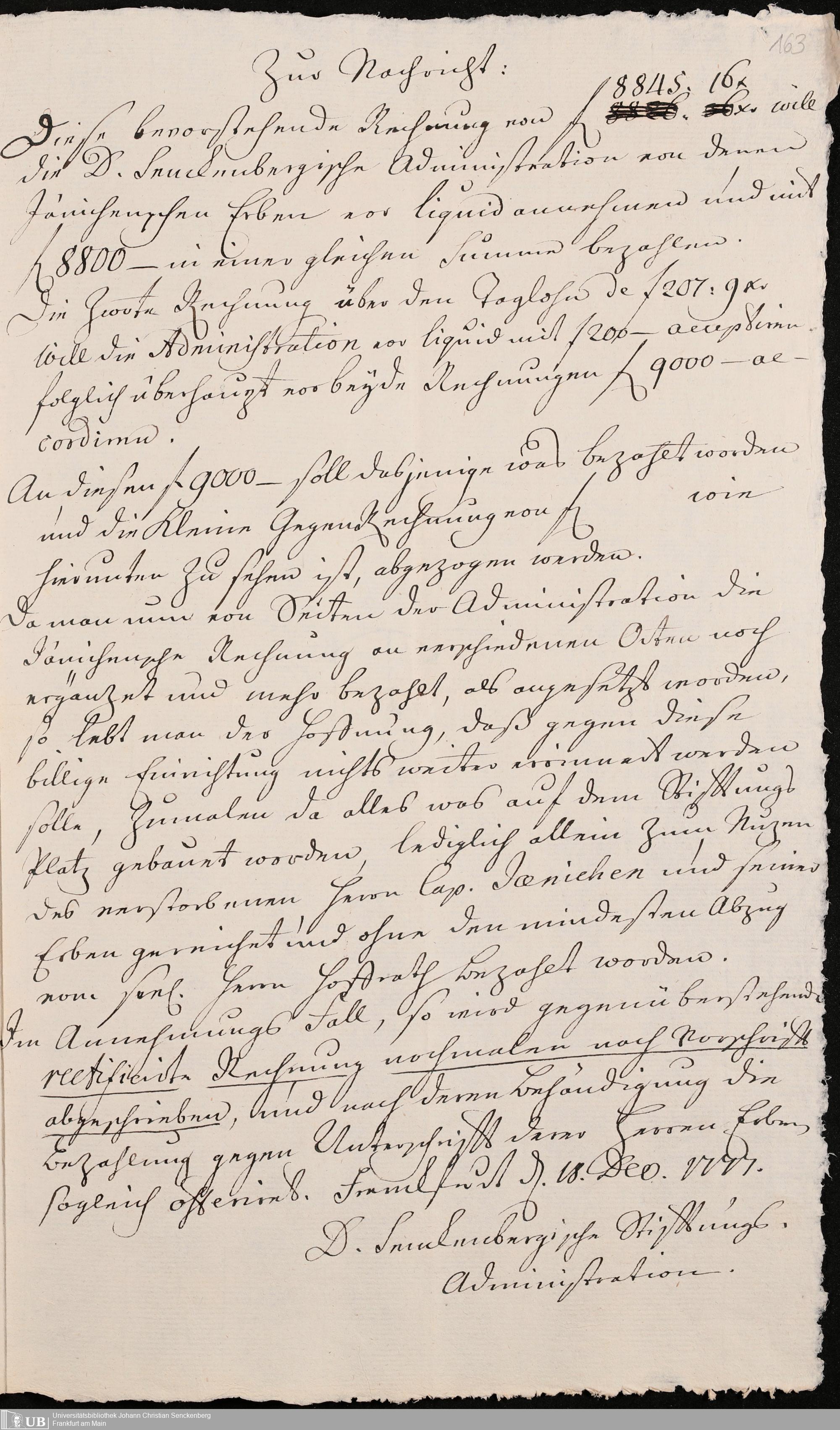 Na 31 Nachlass Johann Christian Senckenberg, 345 - Notizen Senckenbergs zu Verhandlungen sowie Rechnungen und Quittungen
