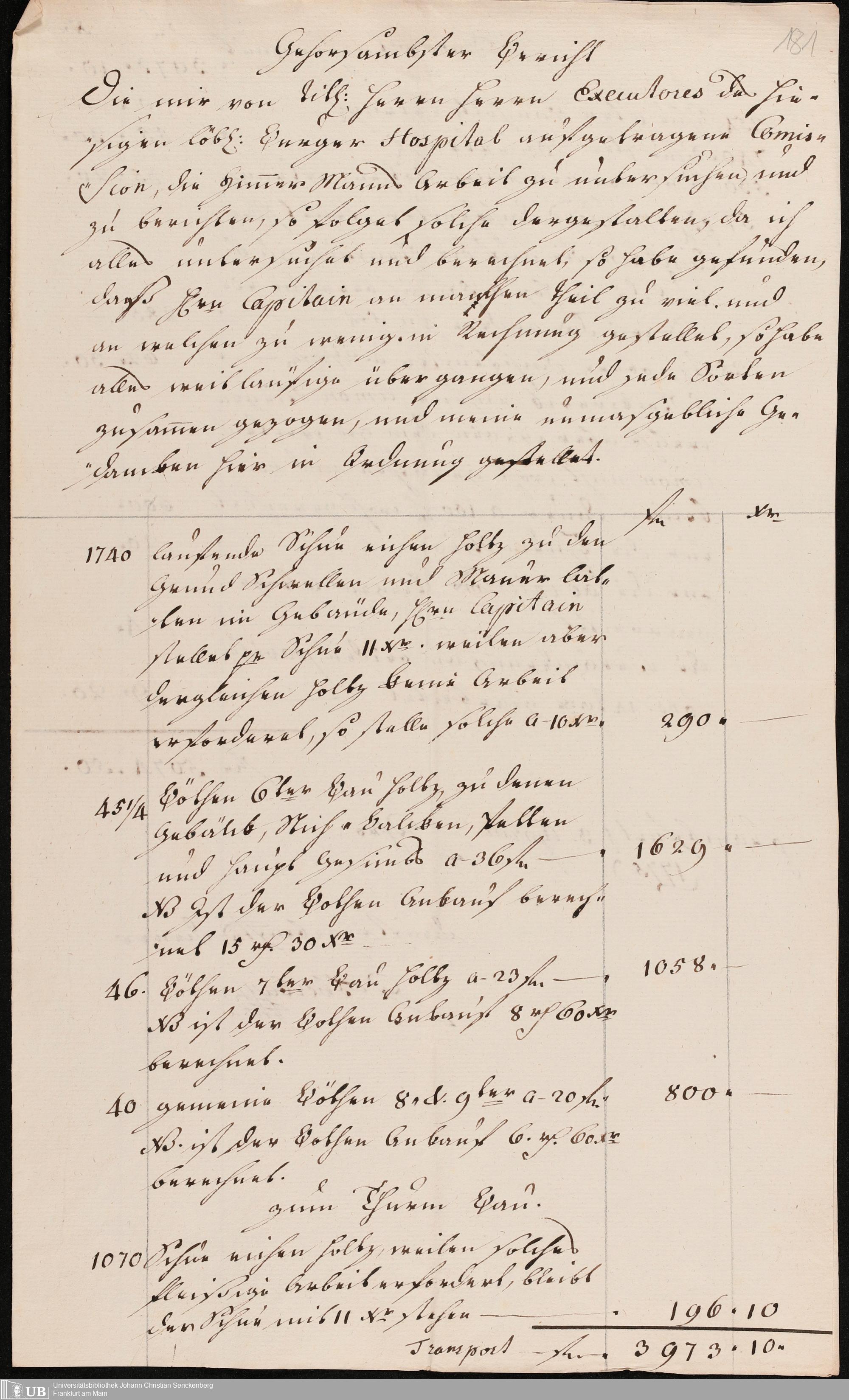 Na 31 Nachlass Johann Christian Senckenberg, 345 - Notizen Senckenbergs zu Verhandlungen sowie Rechnungen und Quittungen