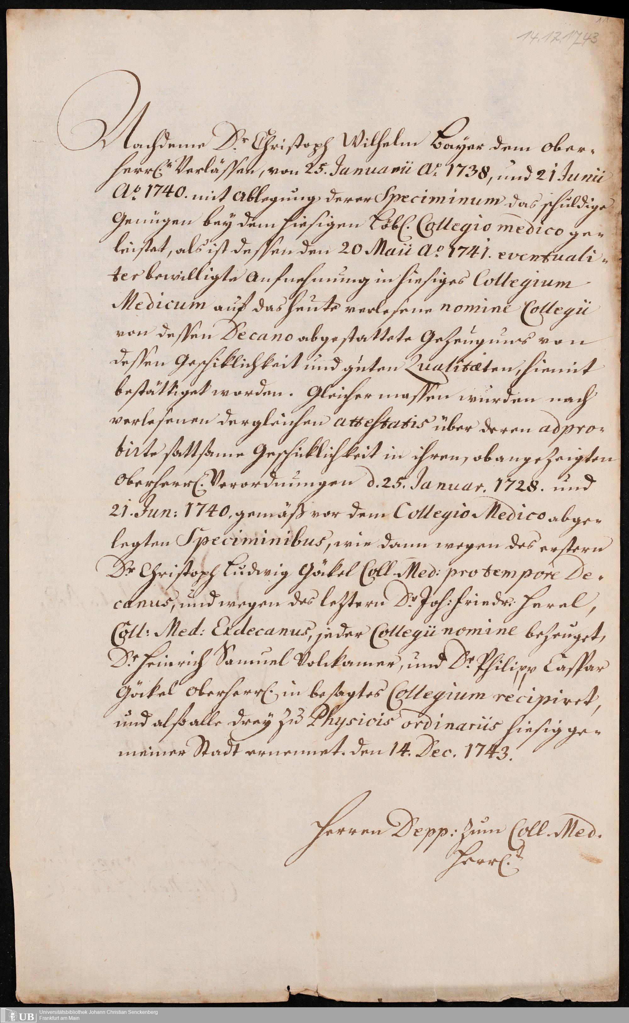 Nachlass Johann Christian Senckenberg