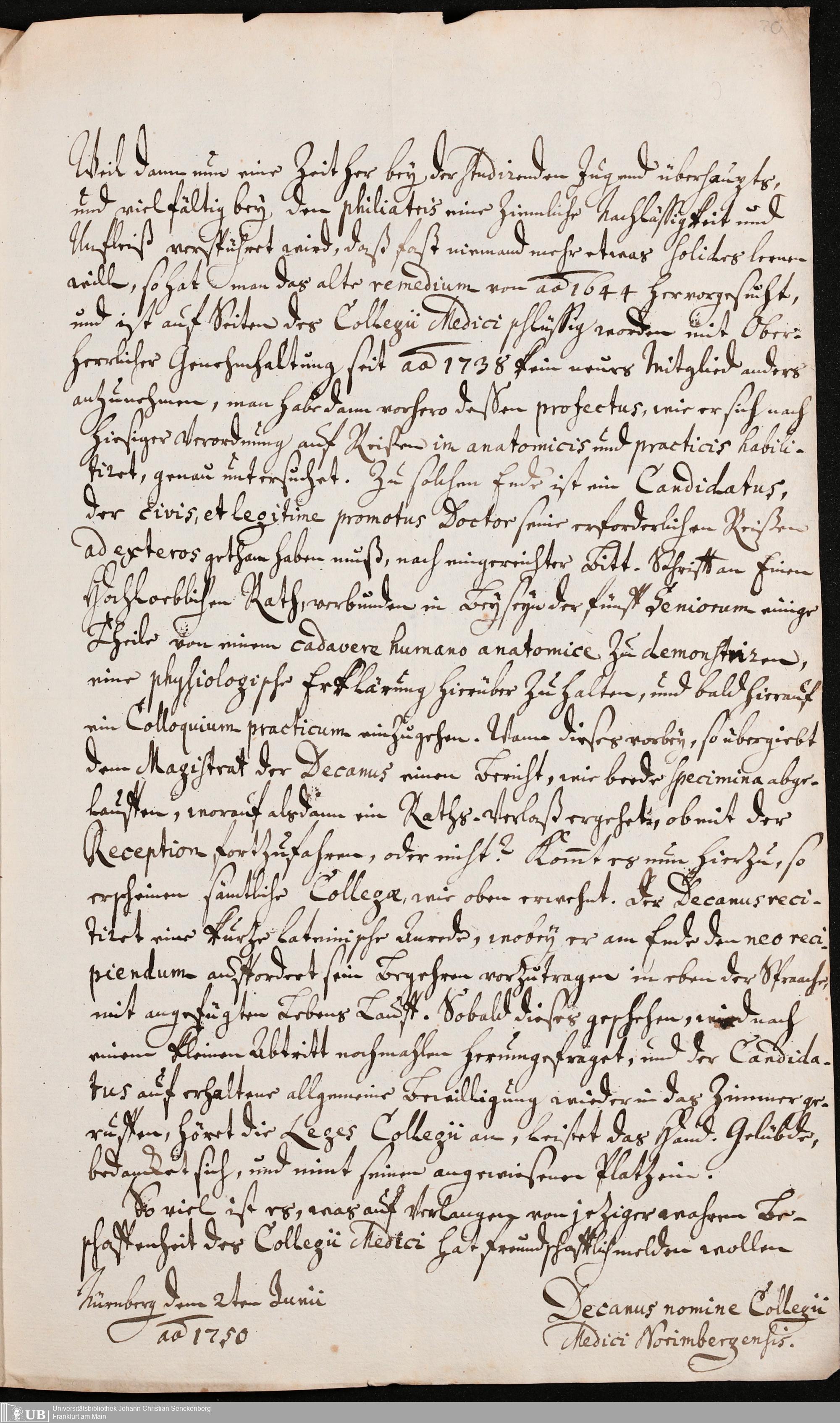 Na 31 Nachlass Johann Christian Senckenberg, 372 - Collegium Medicum in Nürnberg