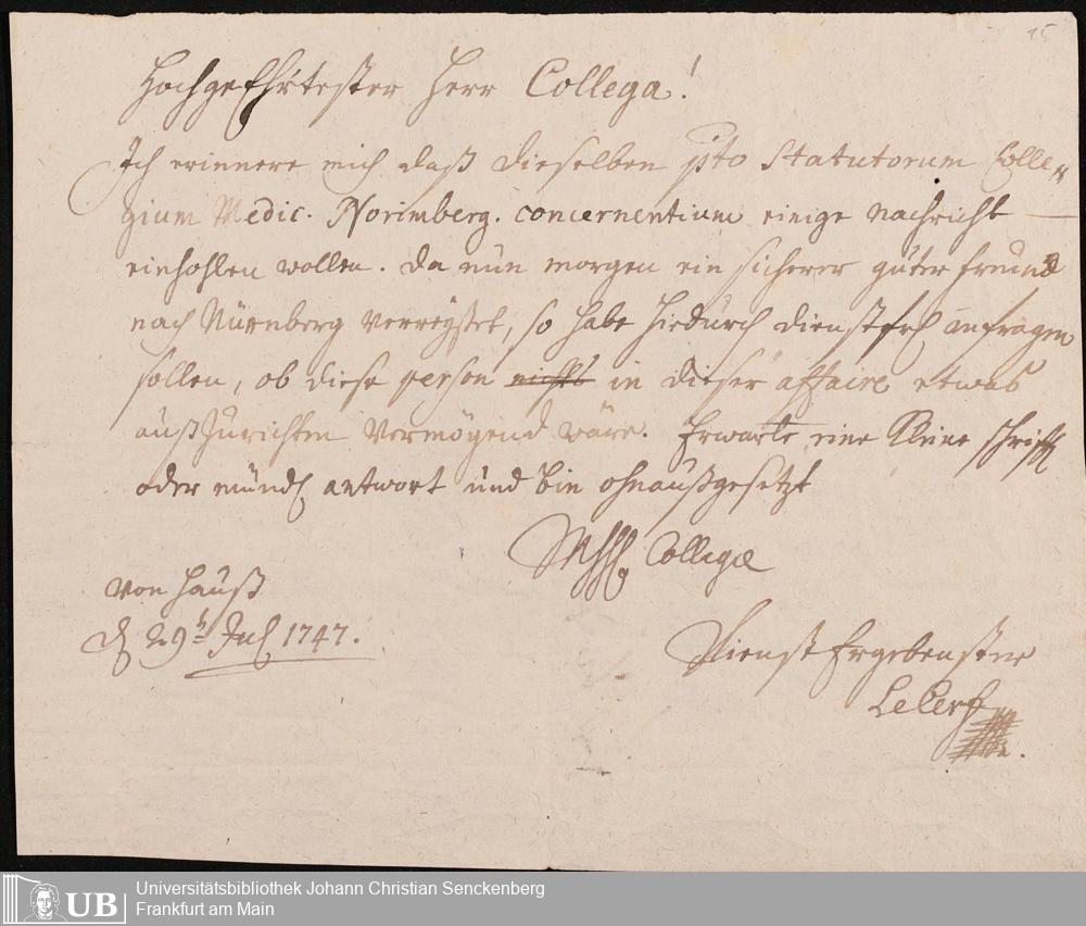 Na 31 Nachlass Johann Christian Senckenberg, 372 - Collegium Medicum in Nürnberg