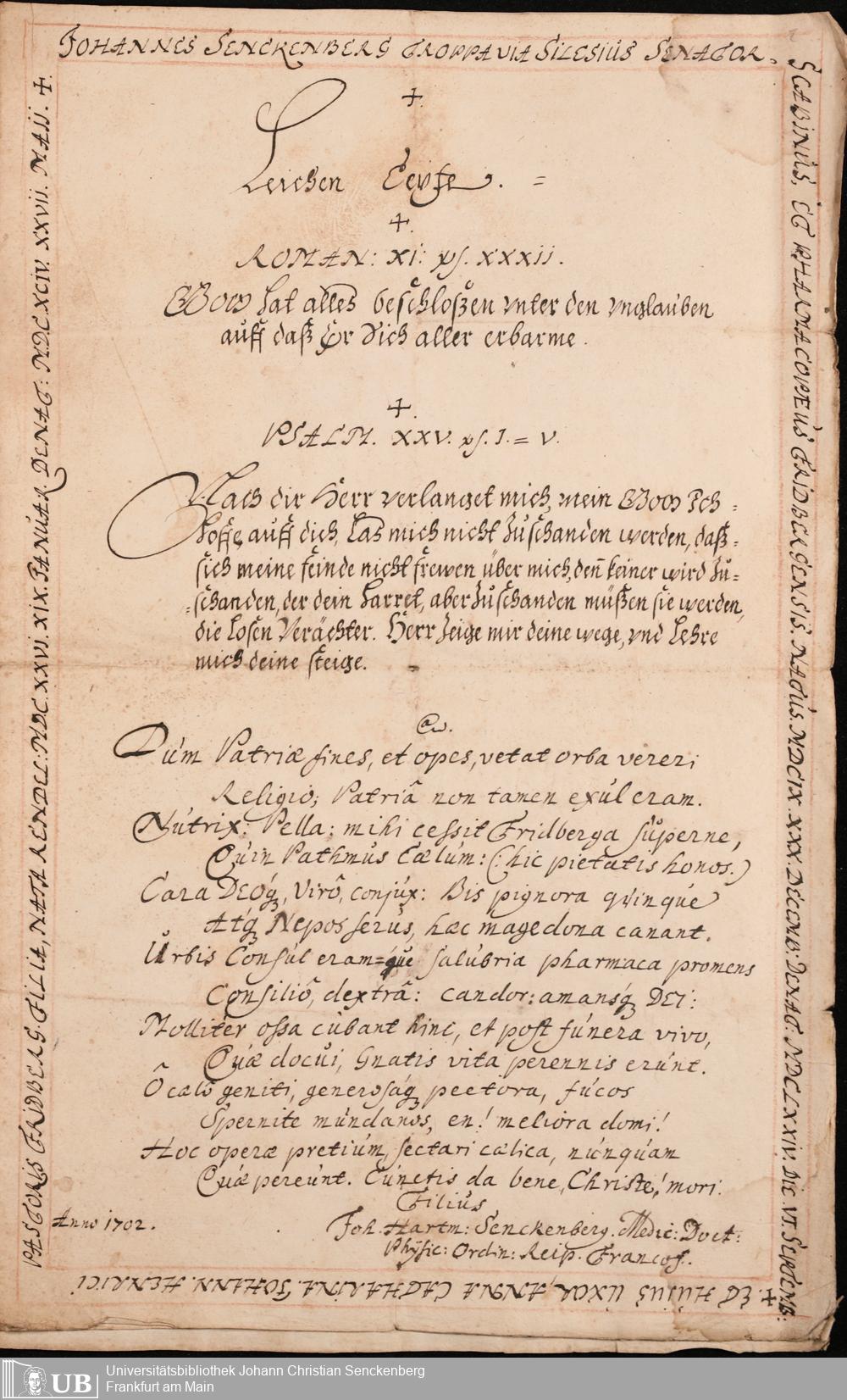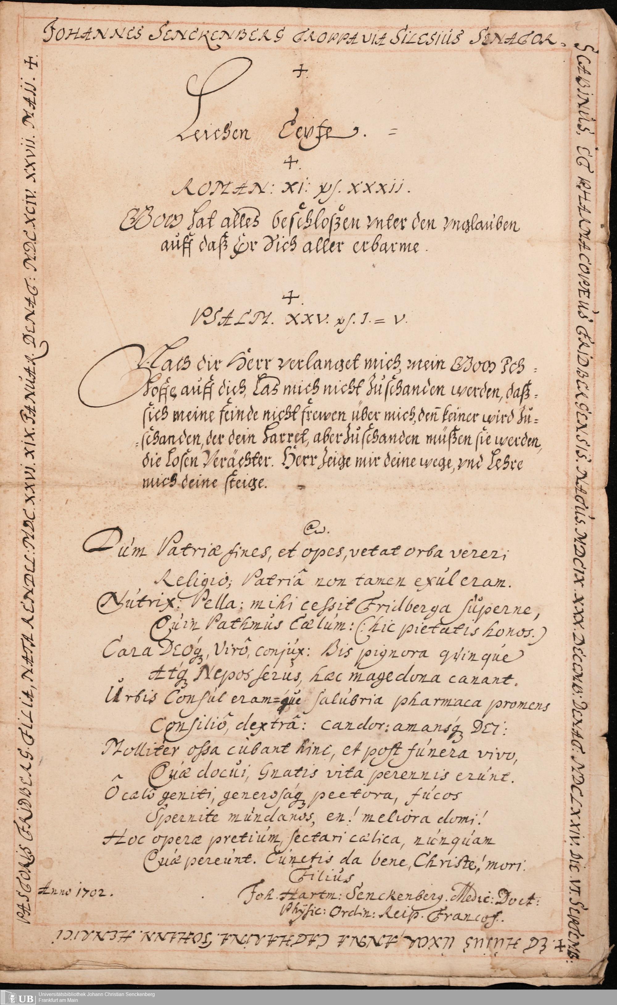 Na 31 Nachlass Johann Christian Senckenberg, 377 - Nachruf auf den Vater Johannes Senckenberg