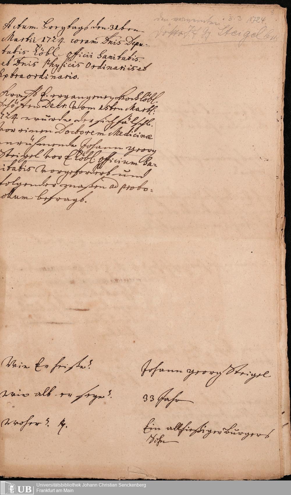 Na 31 Nachlass Johann Christian Senckenberg, 423 - Aufzeichnungen zum Physicat