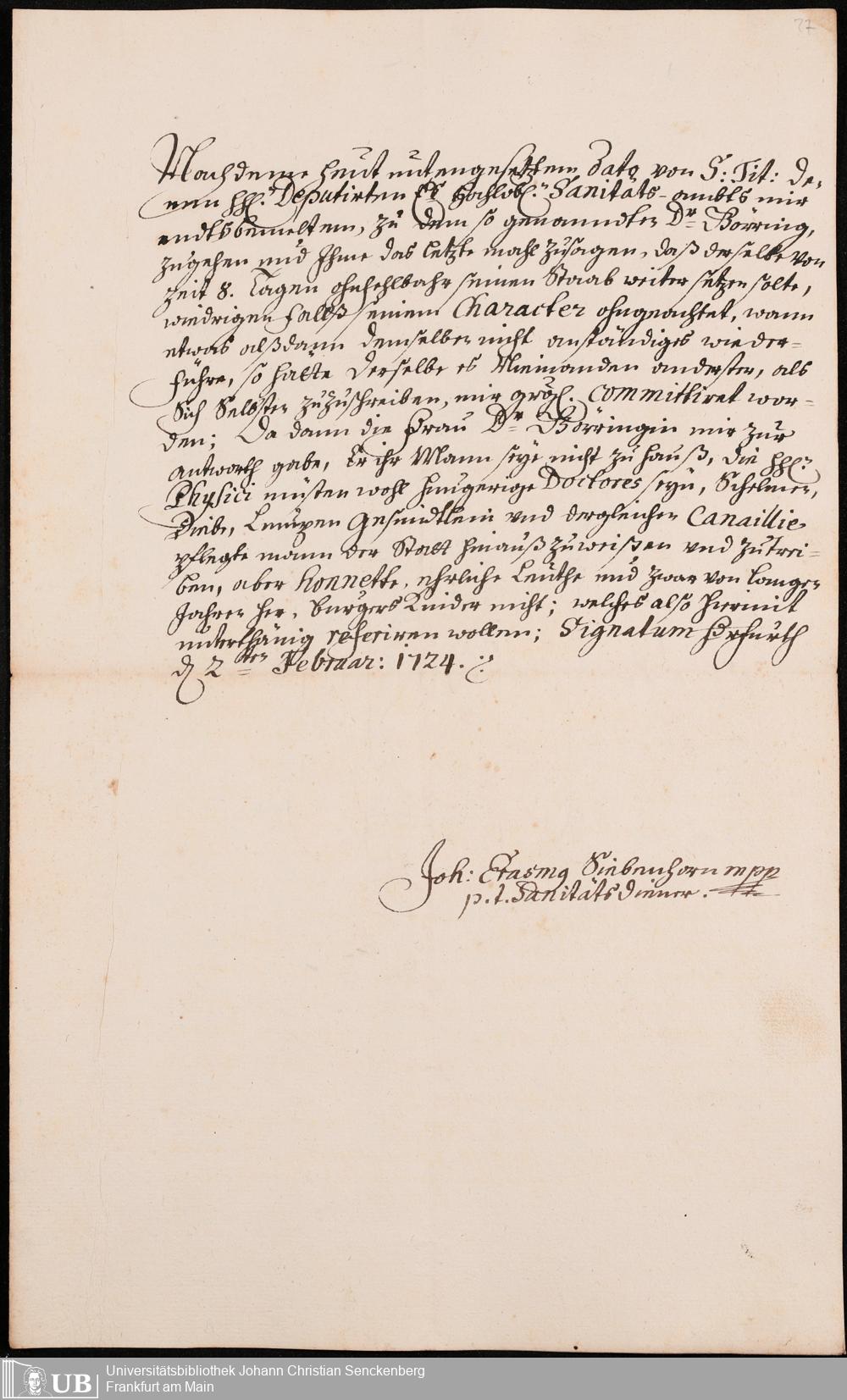 Na 31 Nachlass Johann Christian Senckenberg, 423 - Aufzeichnungen zum Physicat