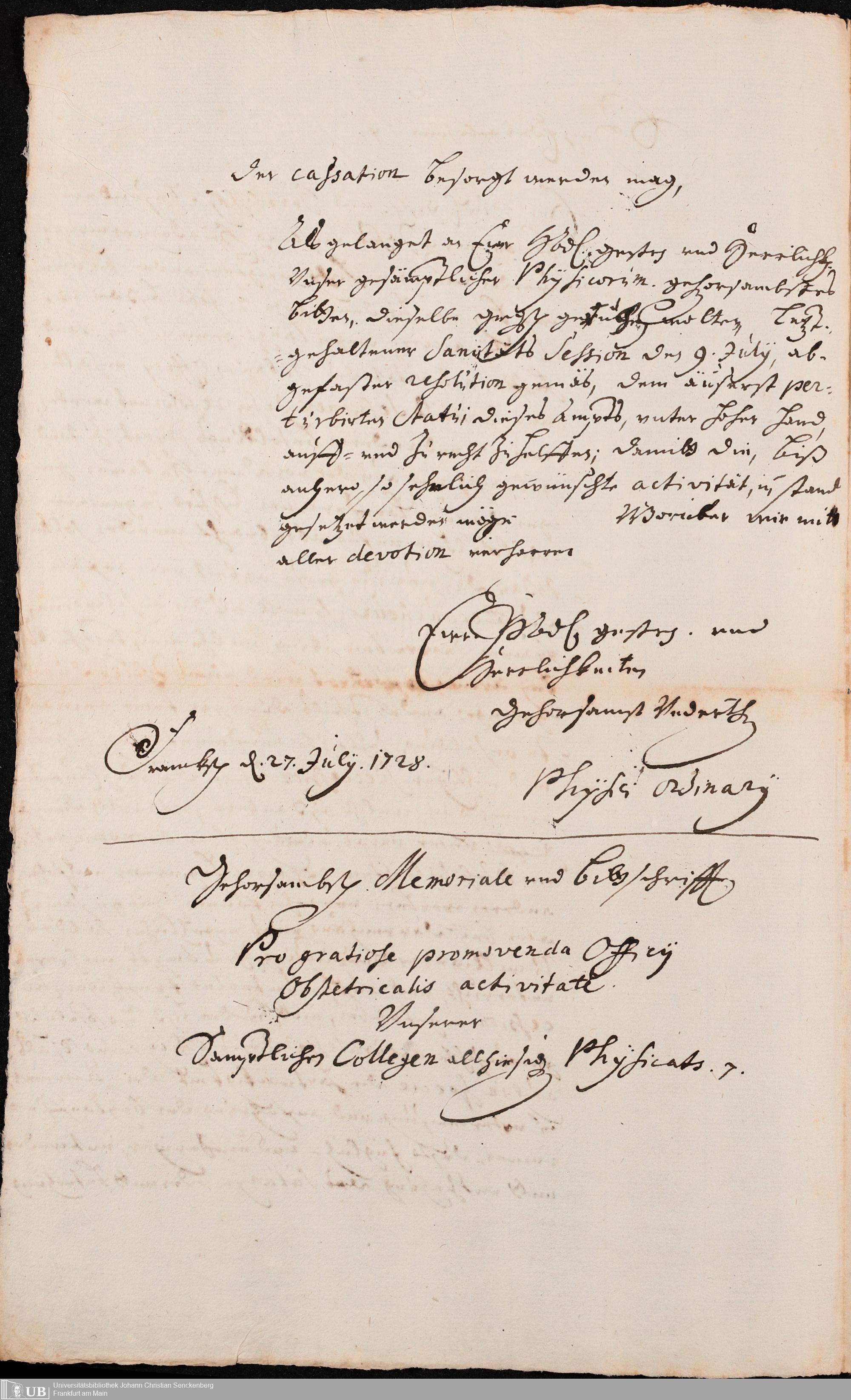 Na 31 Nachlass Johann Christian Senckenberg, 423 - Aufzeichnungen zum Physicat