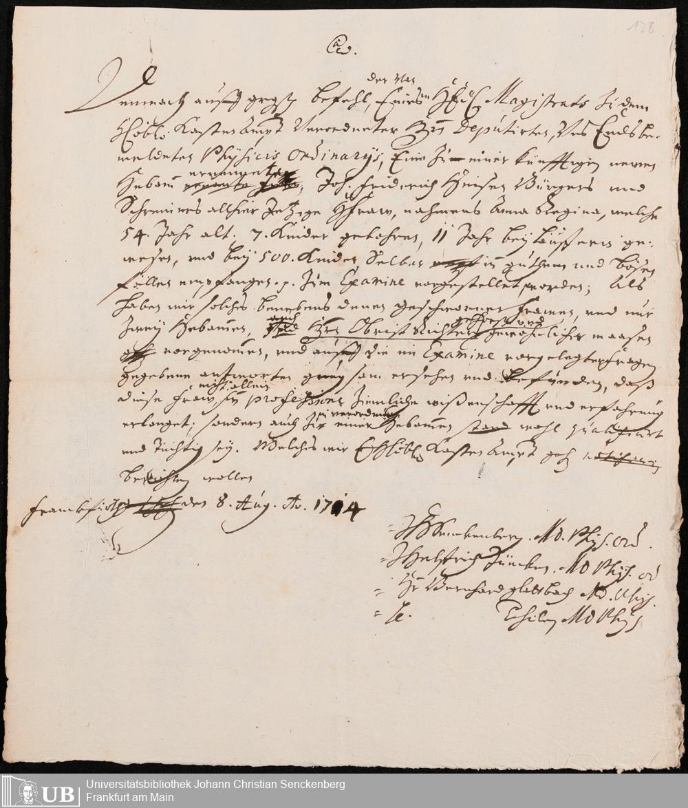 Na 31 Nachlass Johann Christian Senckenberg, 423 - Aufzeichnungen zum Physicat