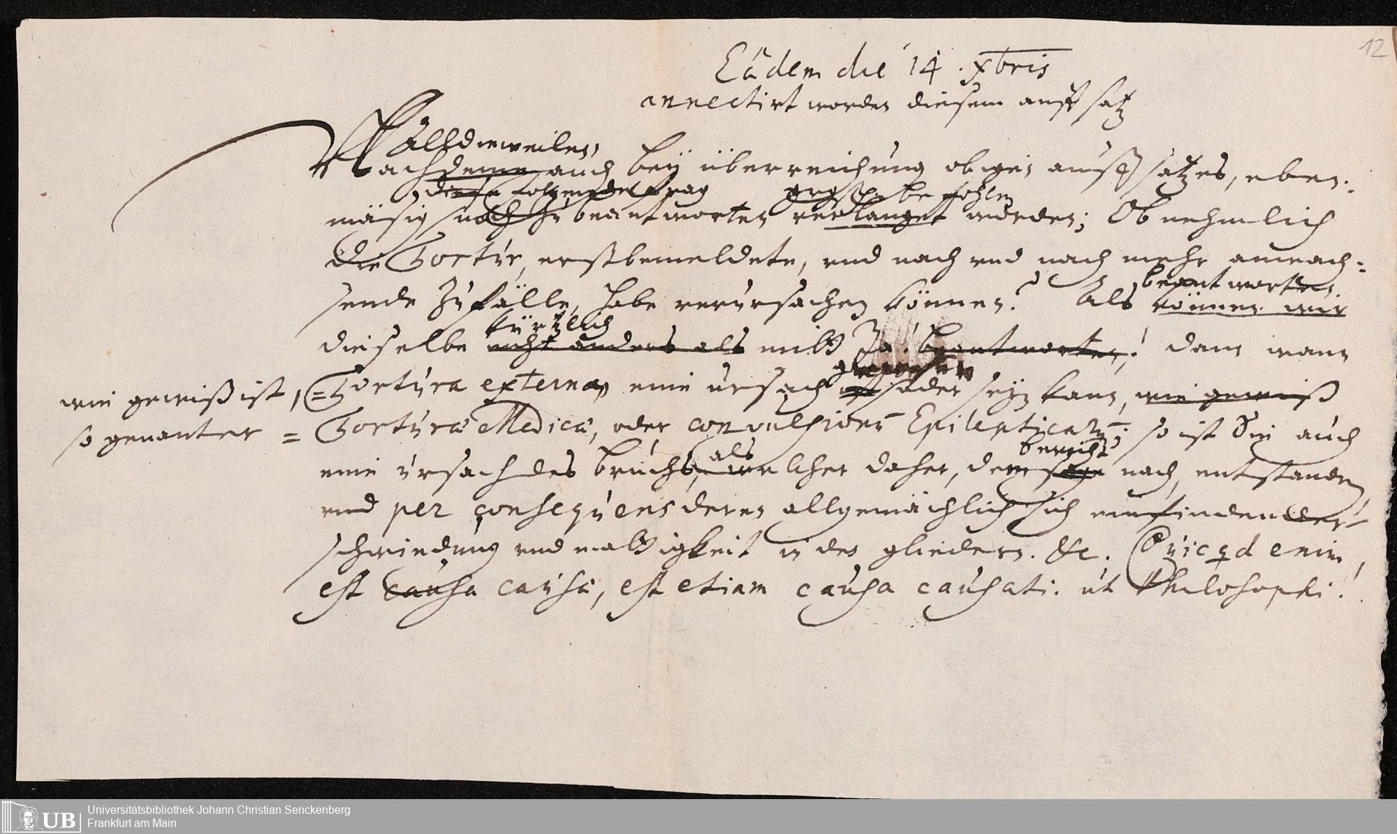 Na 31 Nachlass Johann Christian Senckenberg, 419 - Berichte über Sektionen und Besichtigungen