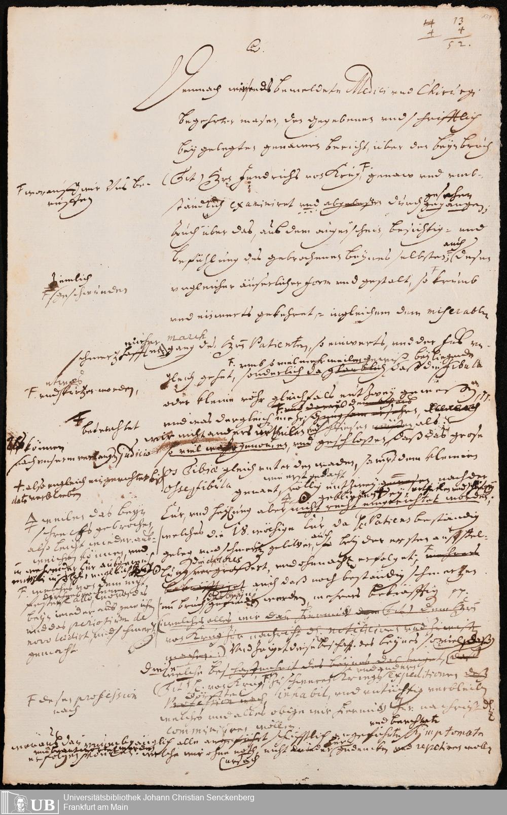 Na 31 Nachlass Johann Christian Senckenberg, 419 - Berichte über Sektionen und Besichtigungen