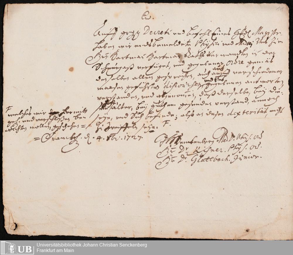 Na 31 Nachlass Johann Christian Senckenberg, 419 - Berichte über Sektionen und Besichtigungen