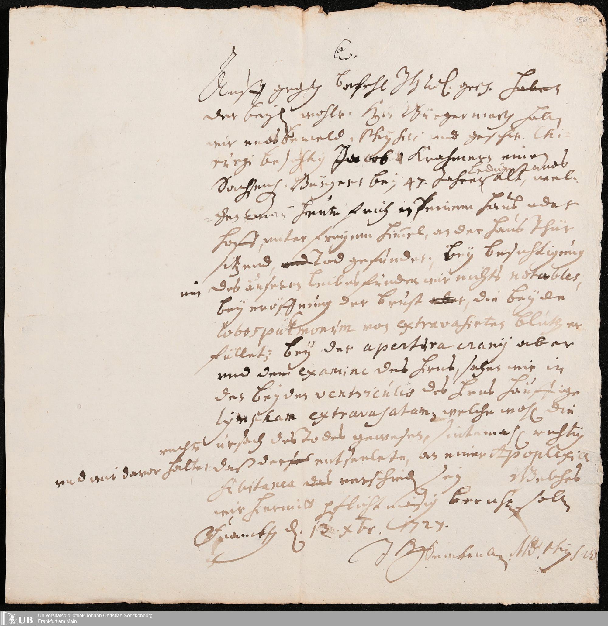 Na 31 Nachlass Johann Christian Senckenberg, 419 - Berichte über Sektionen und Besichtigungen