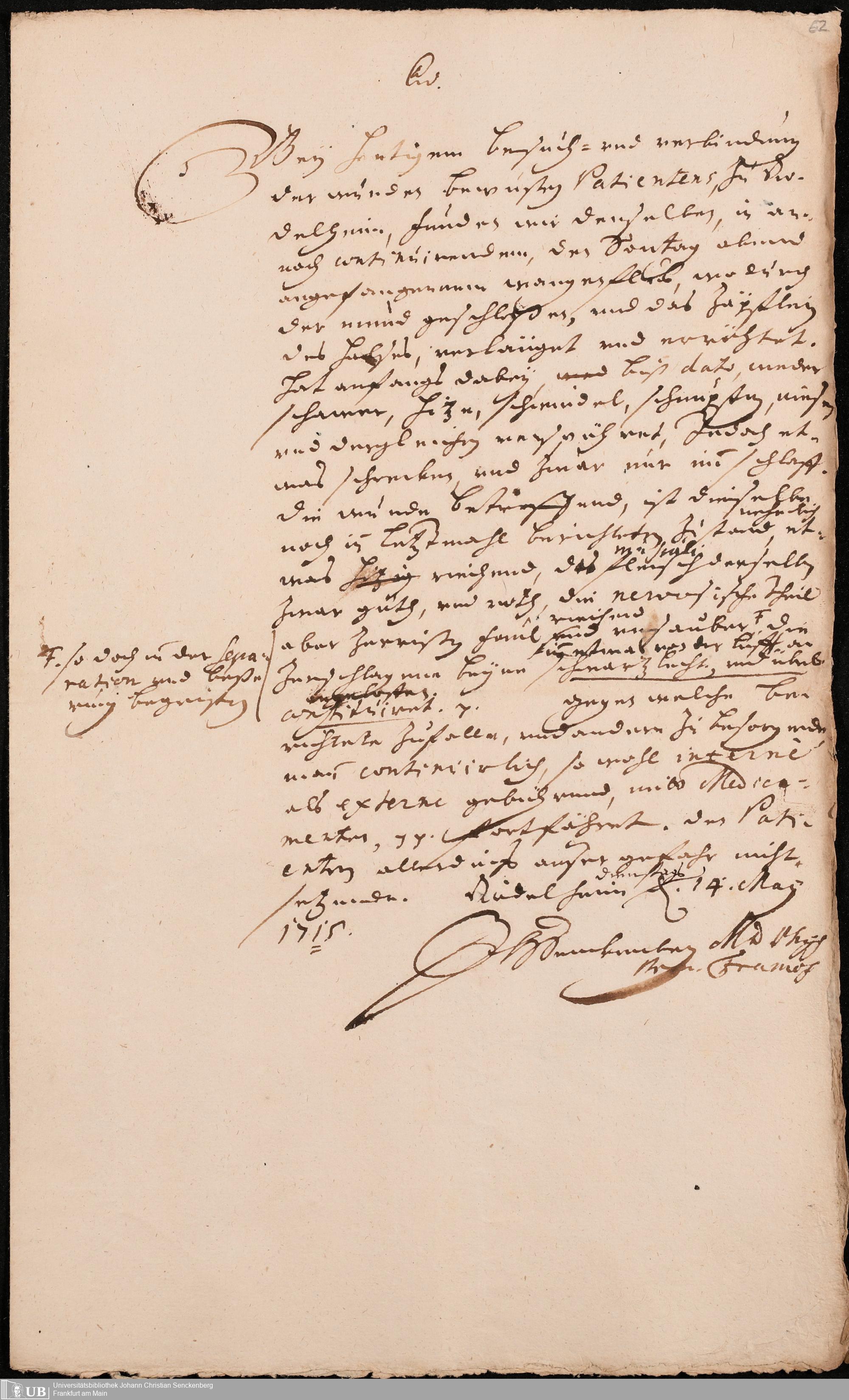 Na 31 Nachlass Johann Christian Senckenberg, 421 - Gutachten und Berichte der Physici