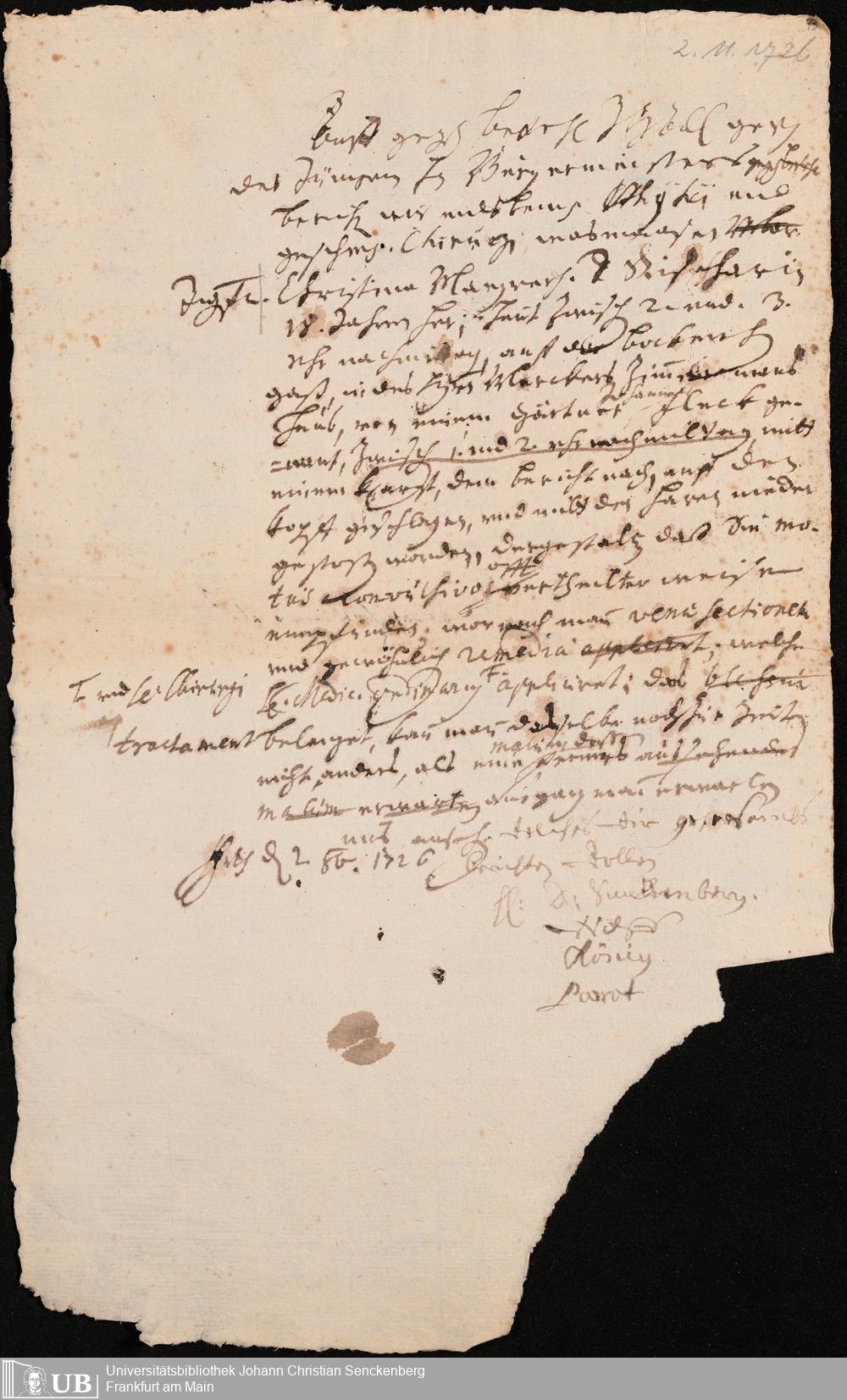 Na 31 Nachlass Johann Christian Senckenberg, 421 - Gutachten und Berichte der Physici