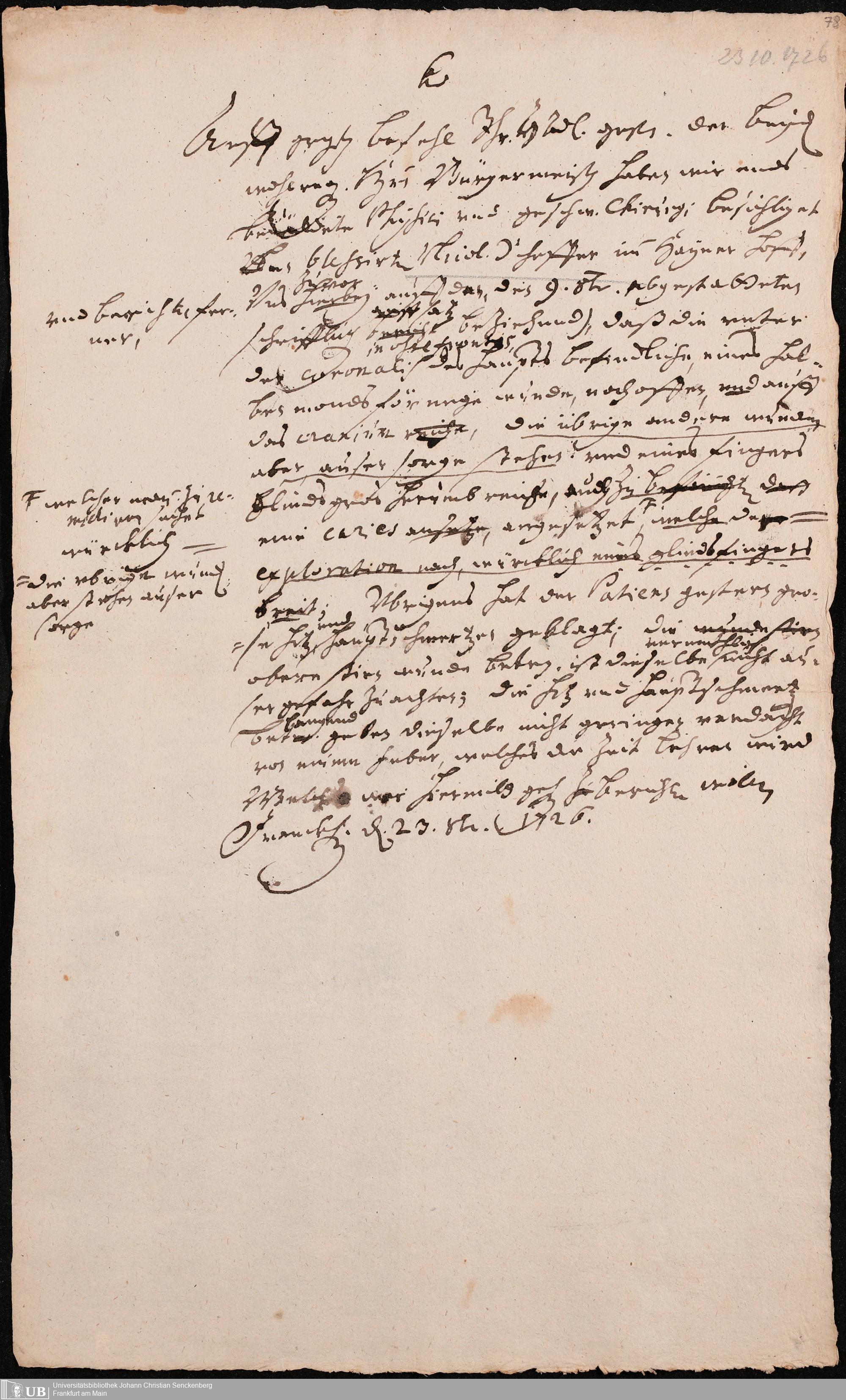 Na 31 Nachlass Johann Christian Senckenberg, 421 - Gutachten und Berichte der Physici